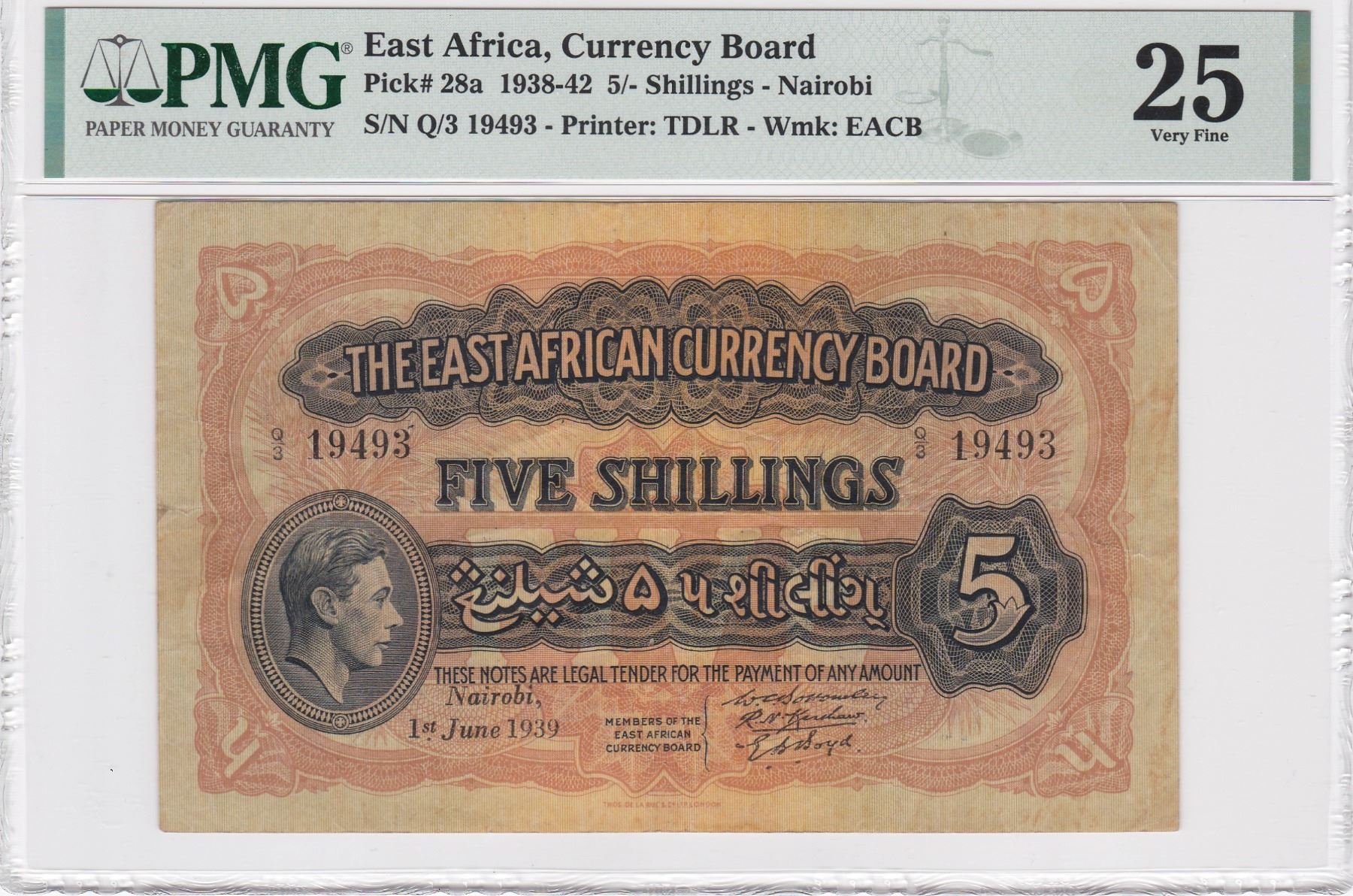 1938-42, East Africa, 5/- Shillings, Q/3 19493 PMG 25