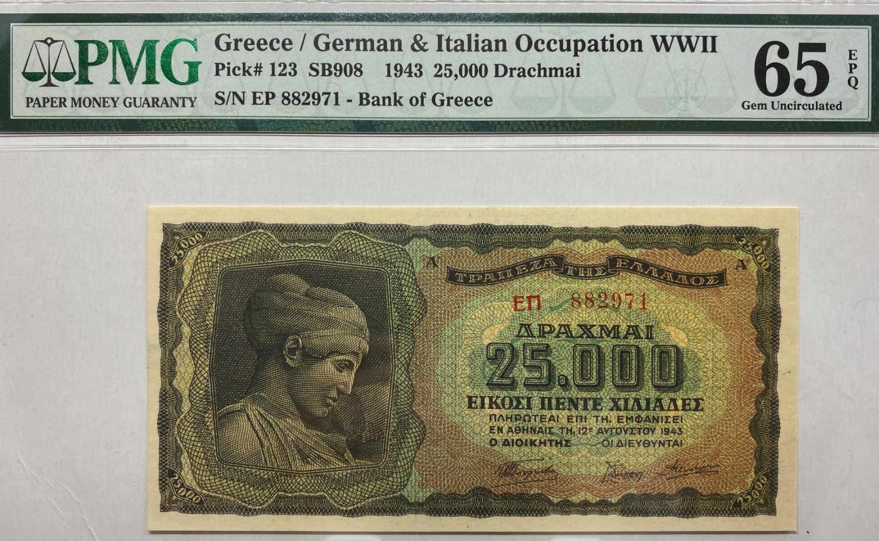 1943 希臘 二戰德意佔領時期 25,000 德拉馬克 {MG 65EPQ