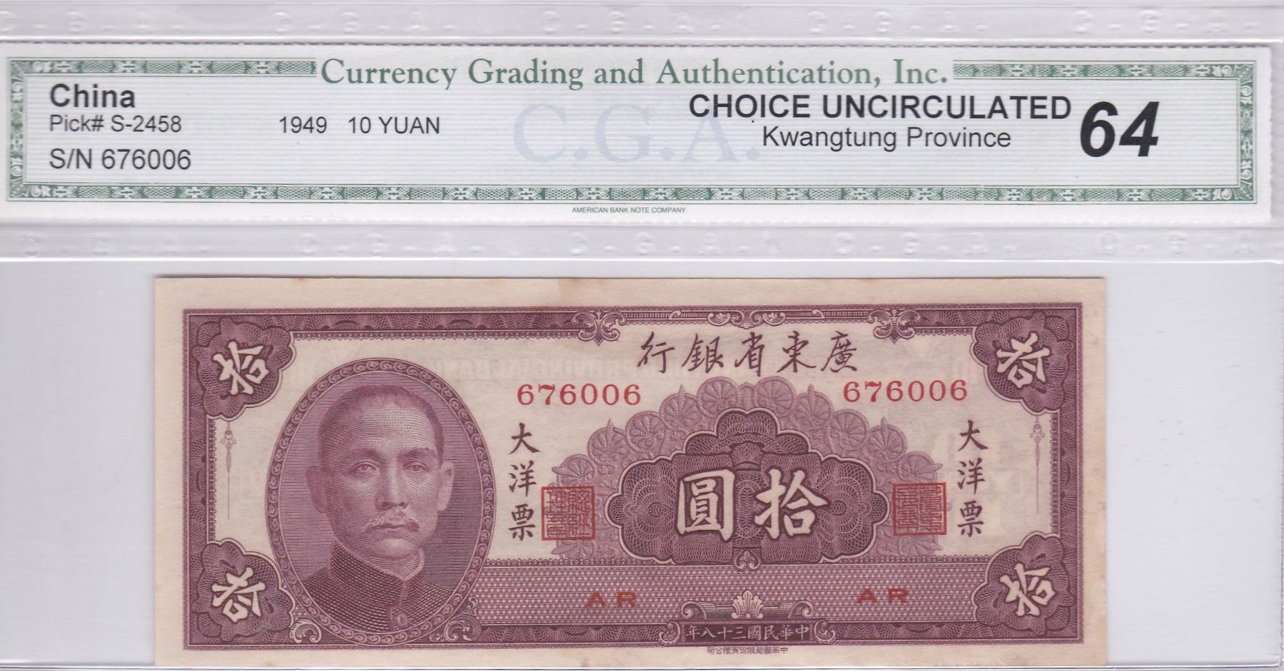 1949, China, Kwangtung Province 10 Yuan, 676006, CGA 64