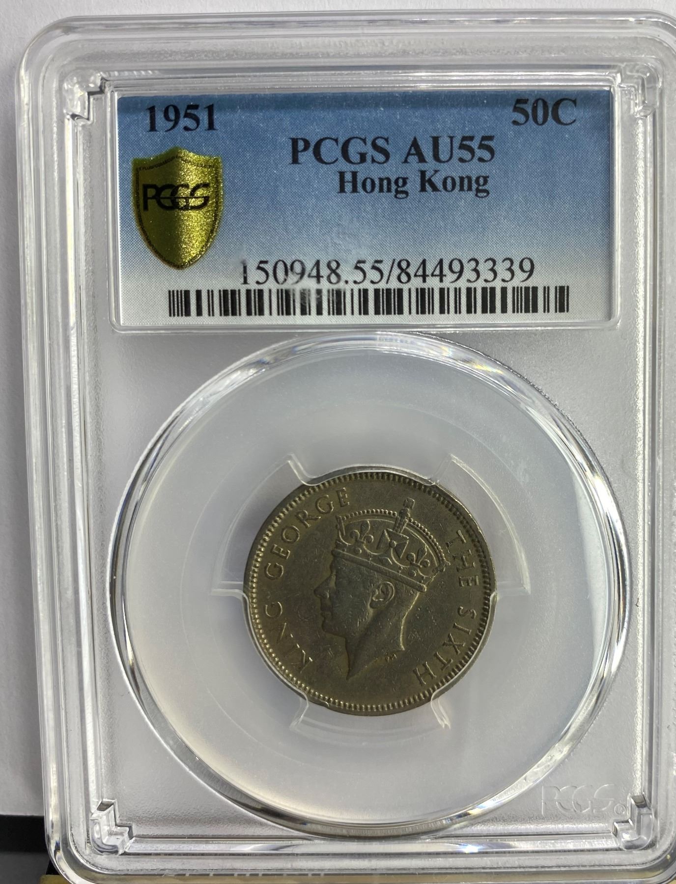 1951, 香港政府, 50cents, 唯一年份, PCGS, AU 55 1951, HKG, 50cents, Key Date, PCGS, AU 55