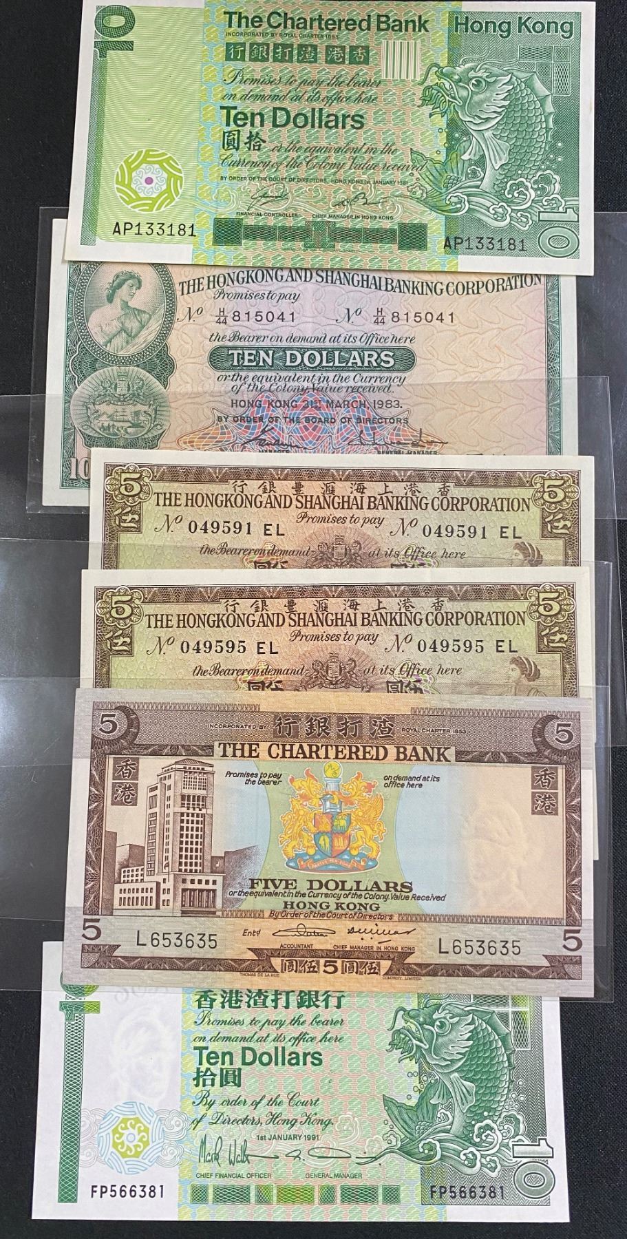 70-90 年代 香港五圓及拾圓 一組六張, 品相:EF -AU