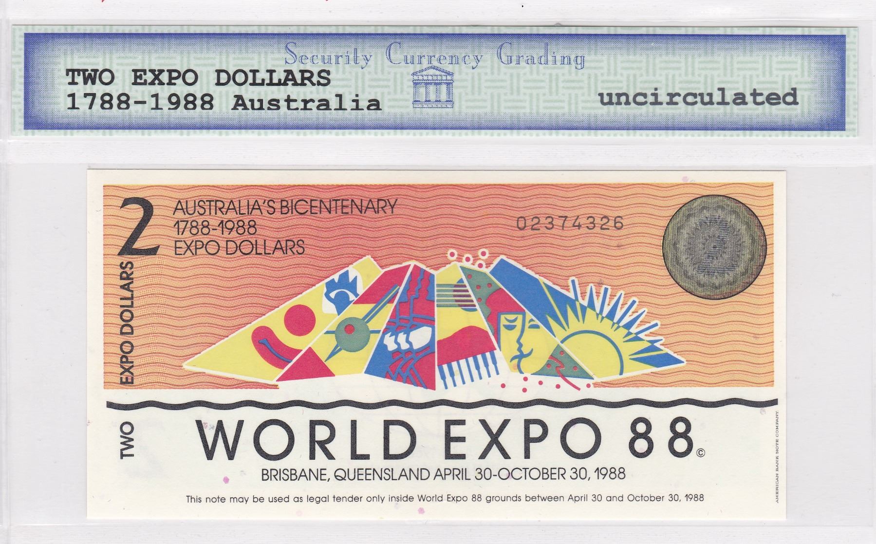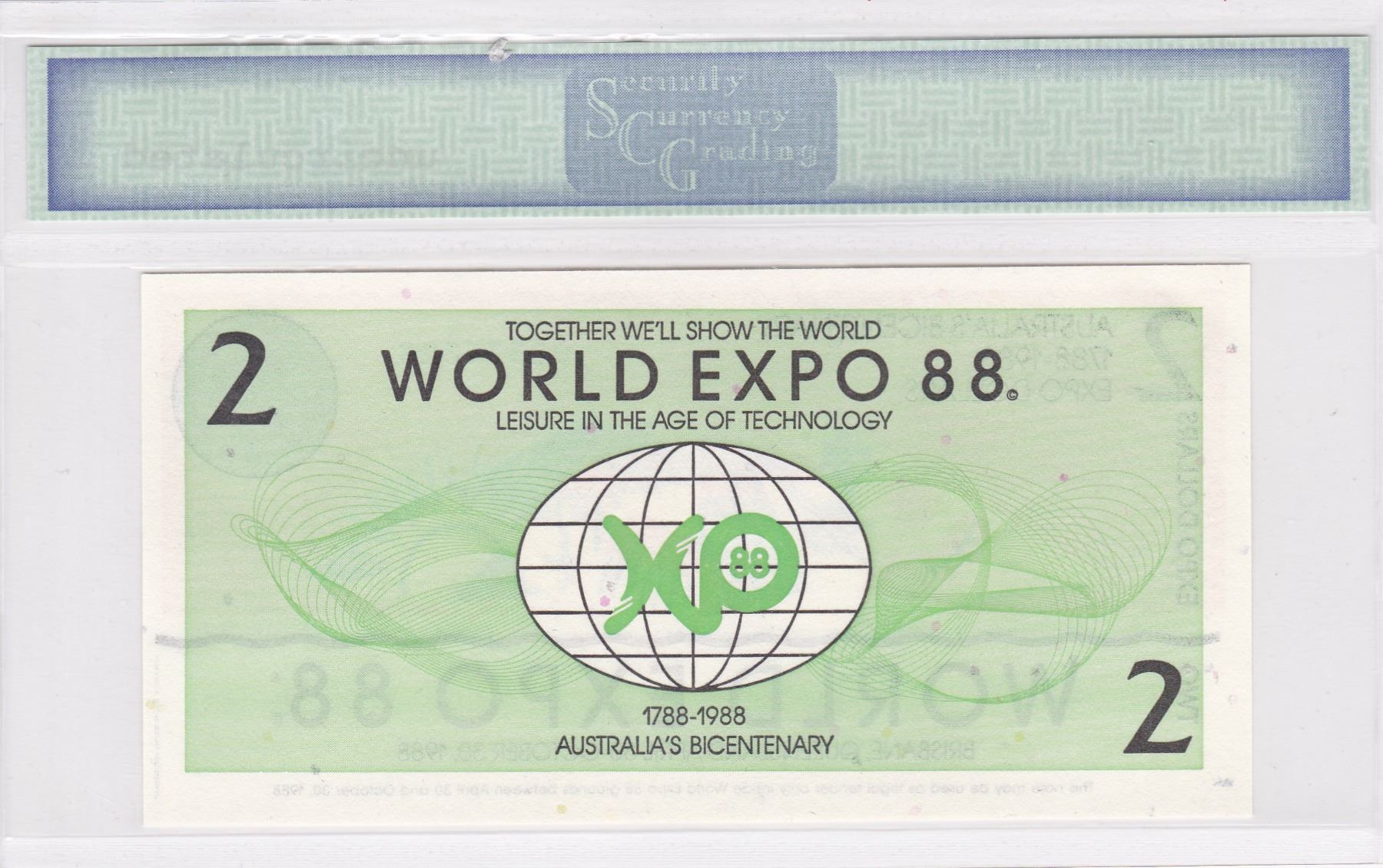 1988, Australia, Two Expo dollars, SCG Uncirculated.