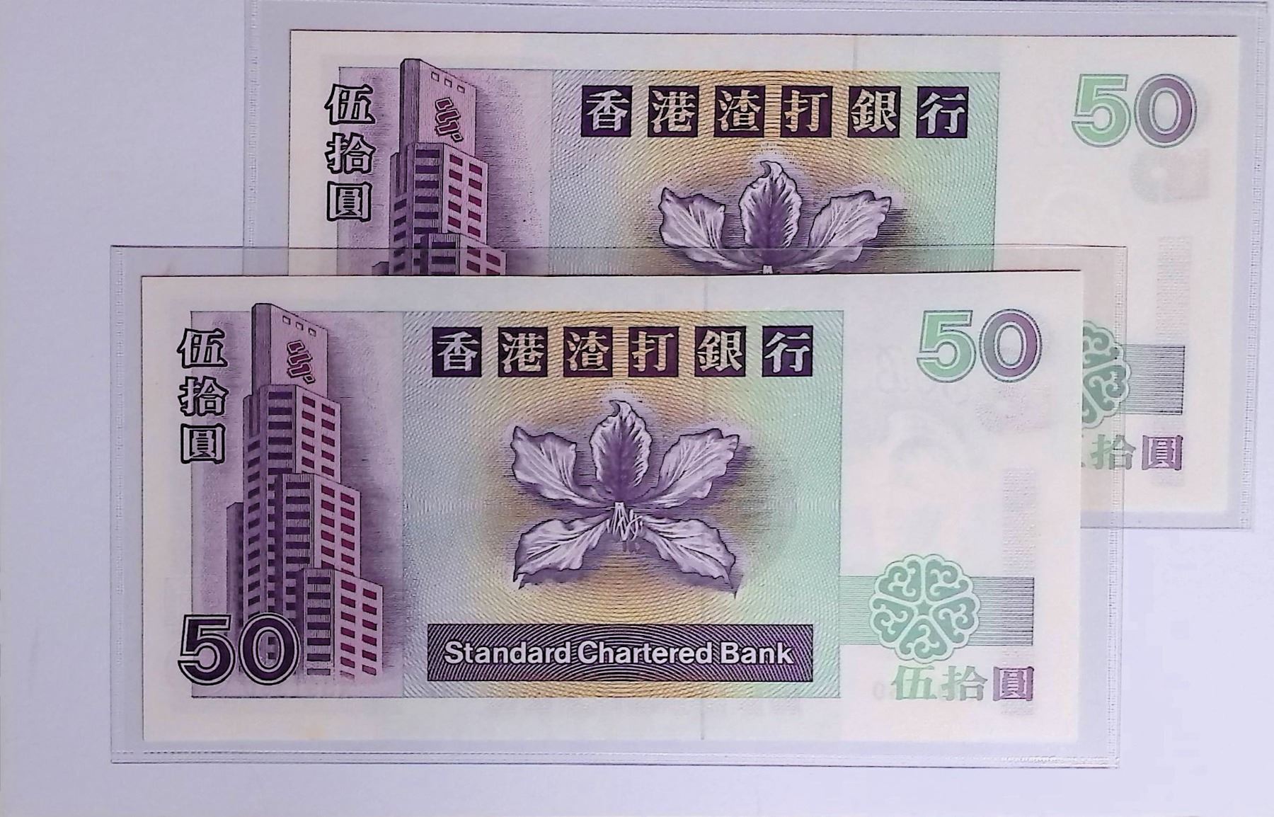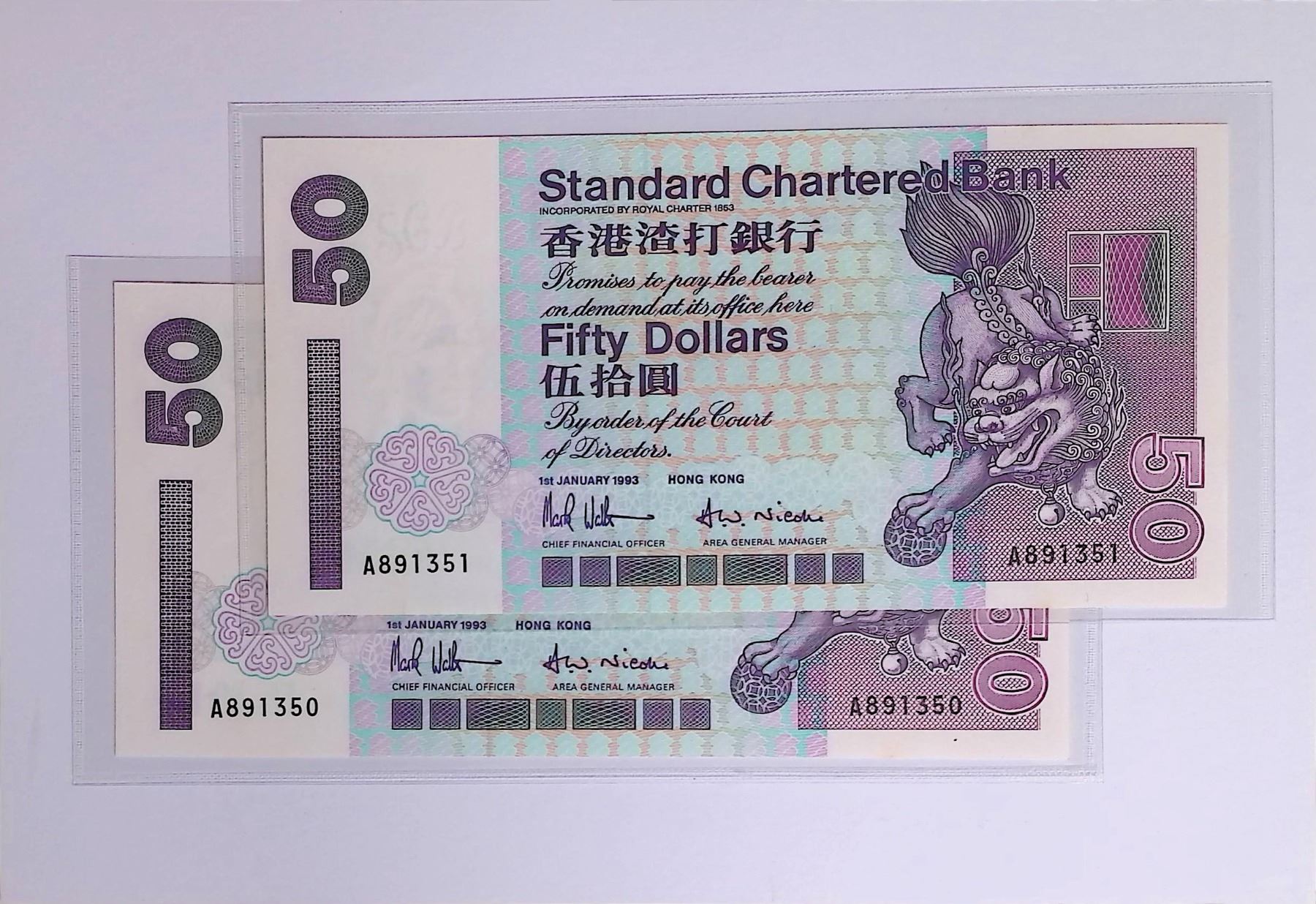 1993, 匯豐銀行 $50 A891350-51, 連號一對, 2pcs, UNC 1993, HSBC $50 A891350-51, consecutive pair, 2pcs, UNC
