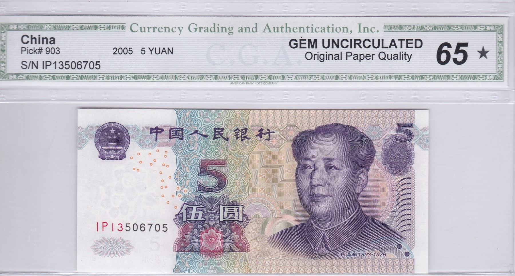 2005, China, 5 Yuan IPI3506705 CGA 65OPQ star