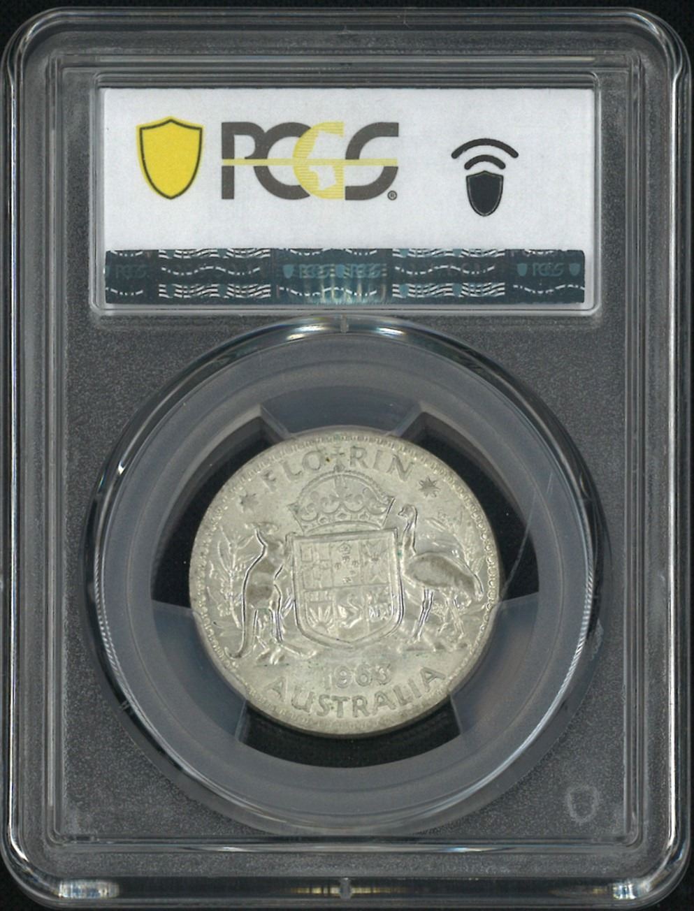 1963(m), 澳洲, 1 弗羅林伊莉莎白二世年輕頭像銀幣. PCGS MS62.