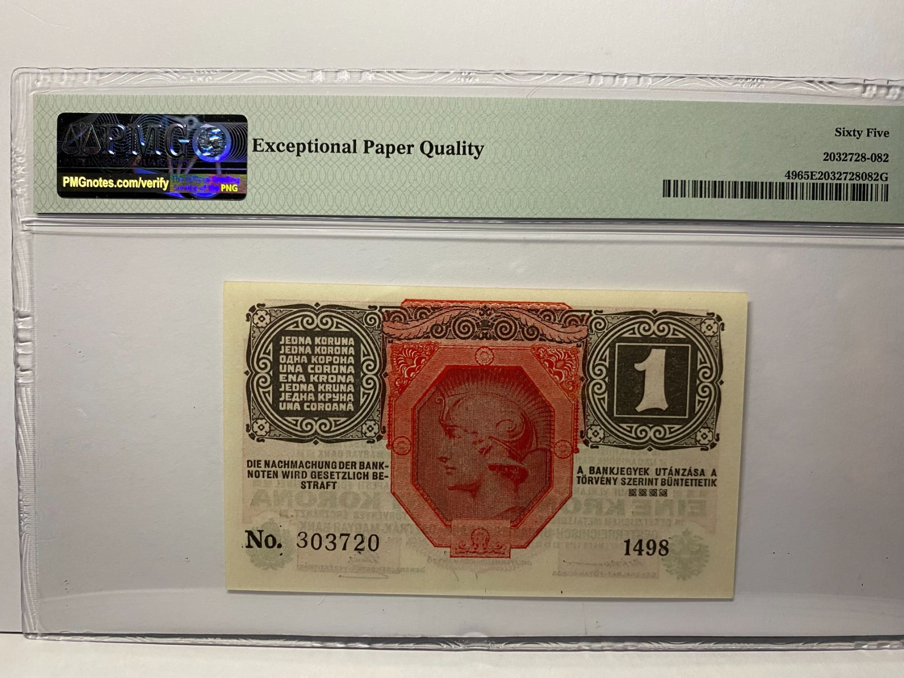 1498 303720, ND 1919 奧地利, 1克朗, PMG 65EPQ, 1498 303720, ND 1919 Austria, Oesterreichisch-Ungarische Bank, 1 Krone, PMG 65EPQ