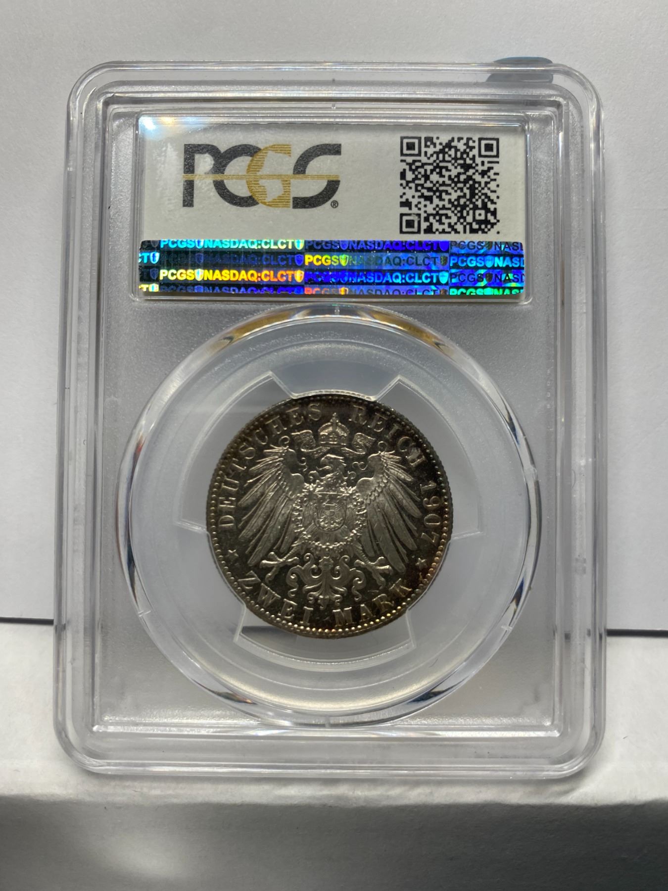 巴伐利亞, 2馬克 銀幣, 1907-D, PCGS MS61, Bavaria, 2 Mark silver coin, 1907-D, PCGS MS61