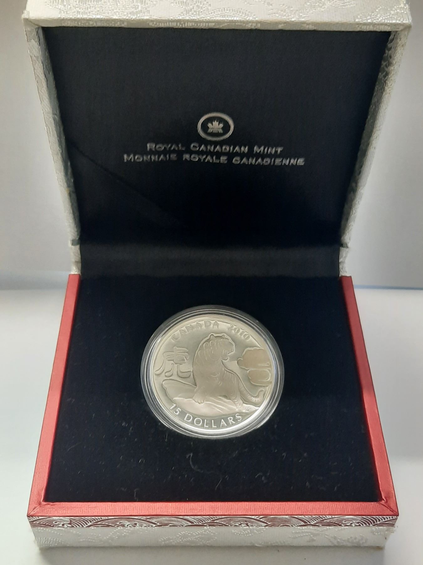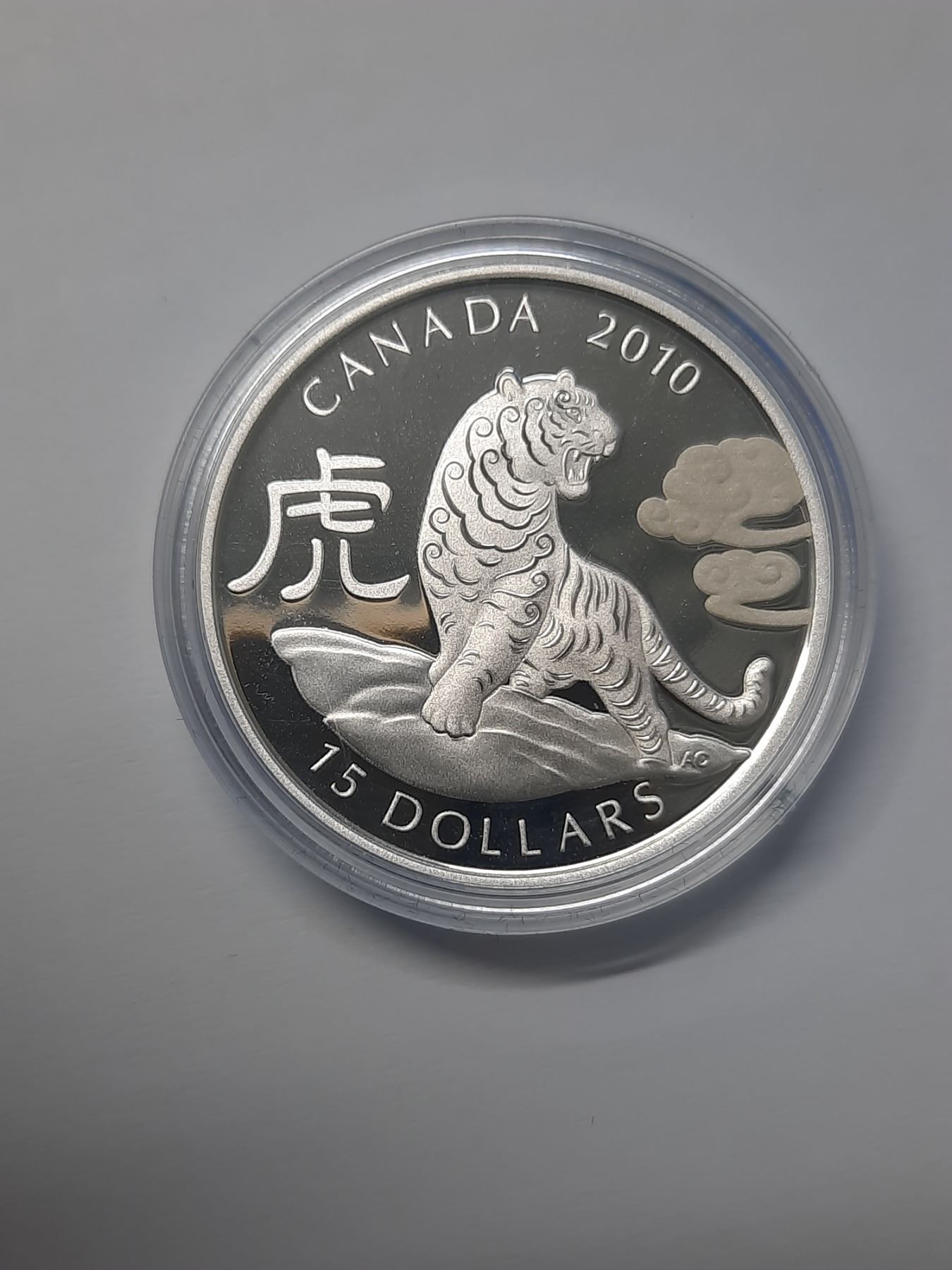 皇家加拿大鑄幣廠 , 2010 加拿大 $15 圓 Year of Tiger, 31.39g, .9999 pure 銀幣, with original box packaging/COA, Limited Edition numbered to 9999, Royal Canadian Mint, 2010 Canada $15 dollars Year of Tiger, 31.39g, .9999 pure silver coin, with original box packaging/COA, Limited Edition numbered to 9999
