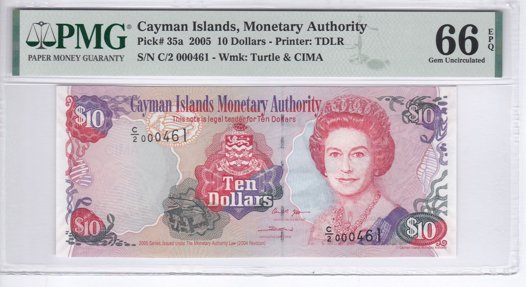 Cayman Islands, Monetary Authority, 10 dollars, 2005, S/N. C/2 000461, P-35a, PMG 66EPQ