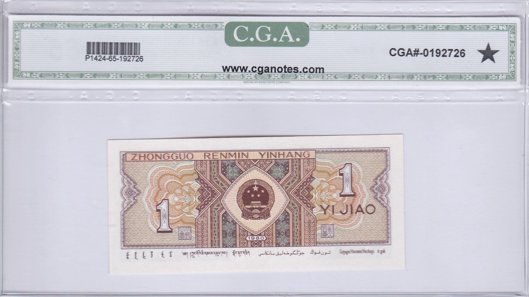 China, 1980, 2 Jiao, Q070284505, CGA 65OPQ Star