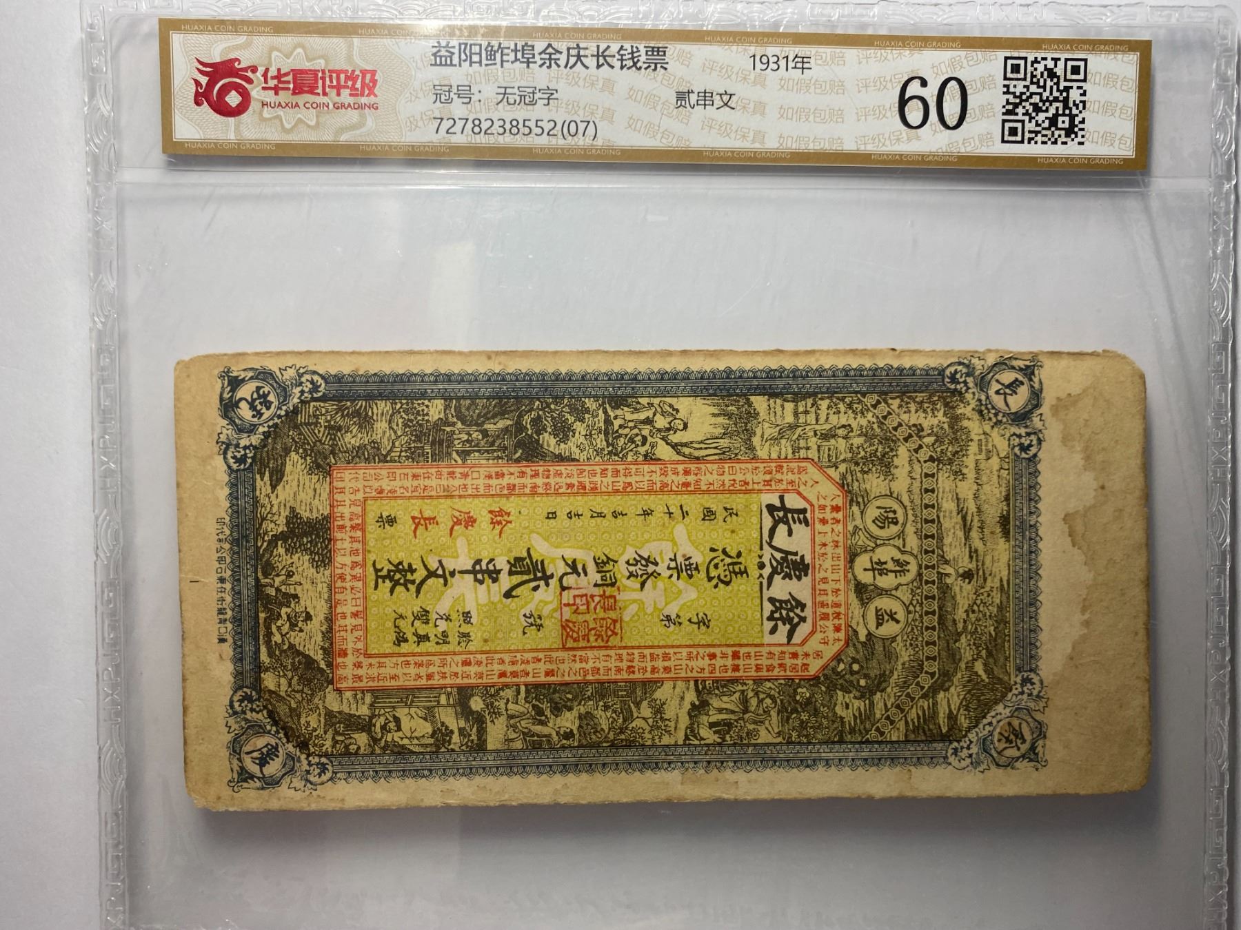 7278238552(07), 1931, China, 20 cash, Huaxia Coin Grading 60