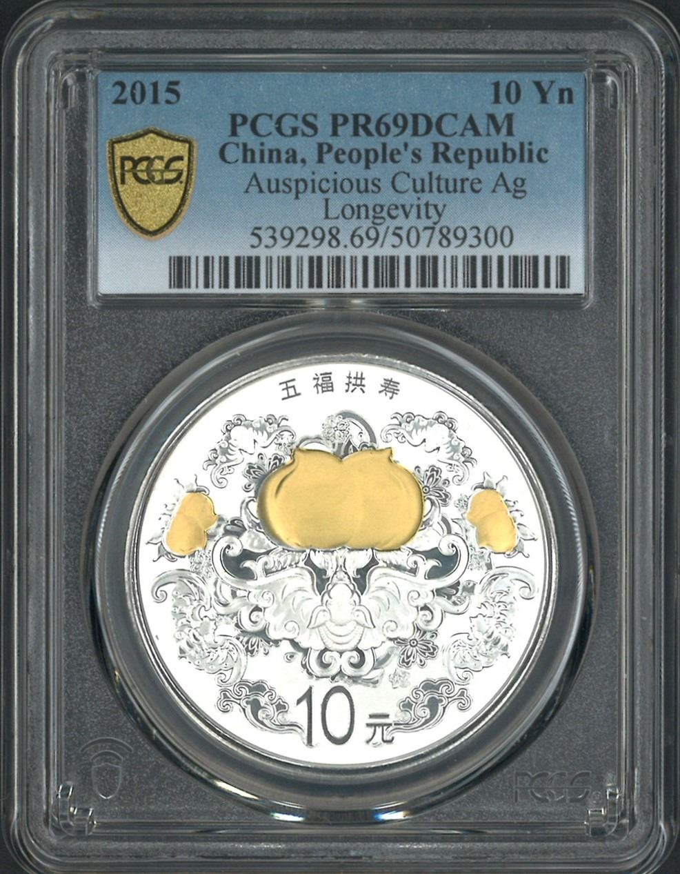 China, 2015, Auspicious Culture- Longevity, 10 Yuen Silver coin PCGS PRDCAM.