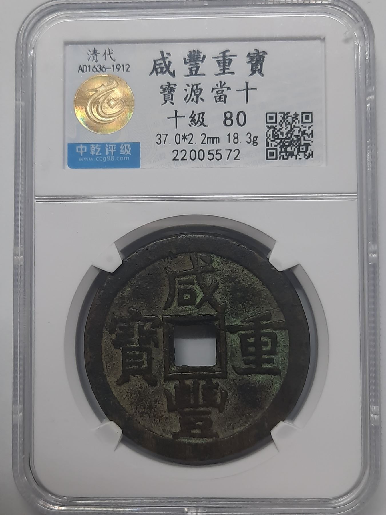 China Ancient coin, Xian Feng Zhong Bao, 10 cash, AD1636-1912, CCG 80, 37x2.2mm, 18.3g