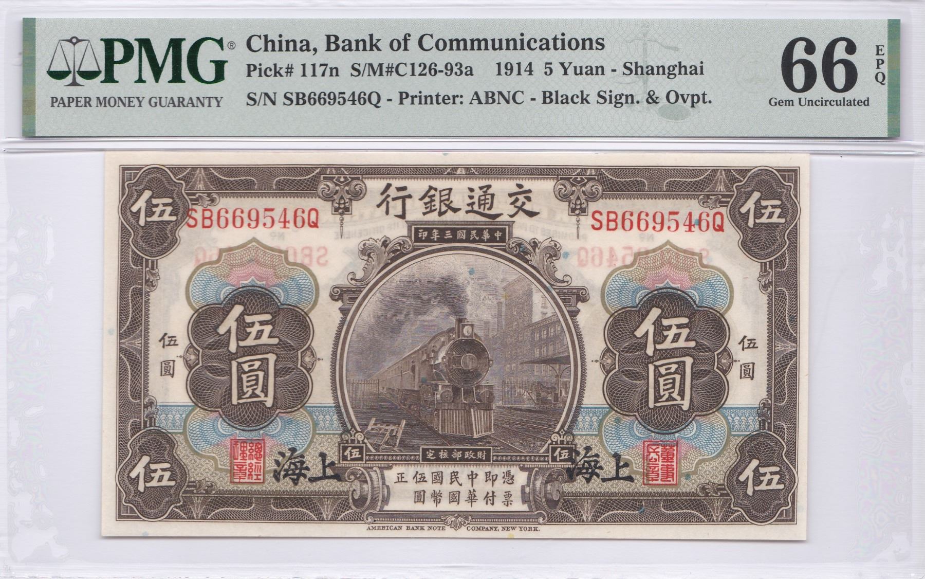 China, Bank of Communications, 1914, 5 Yuan, SB669546Q. PMG 66EPQ.