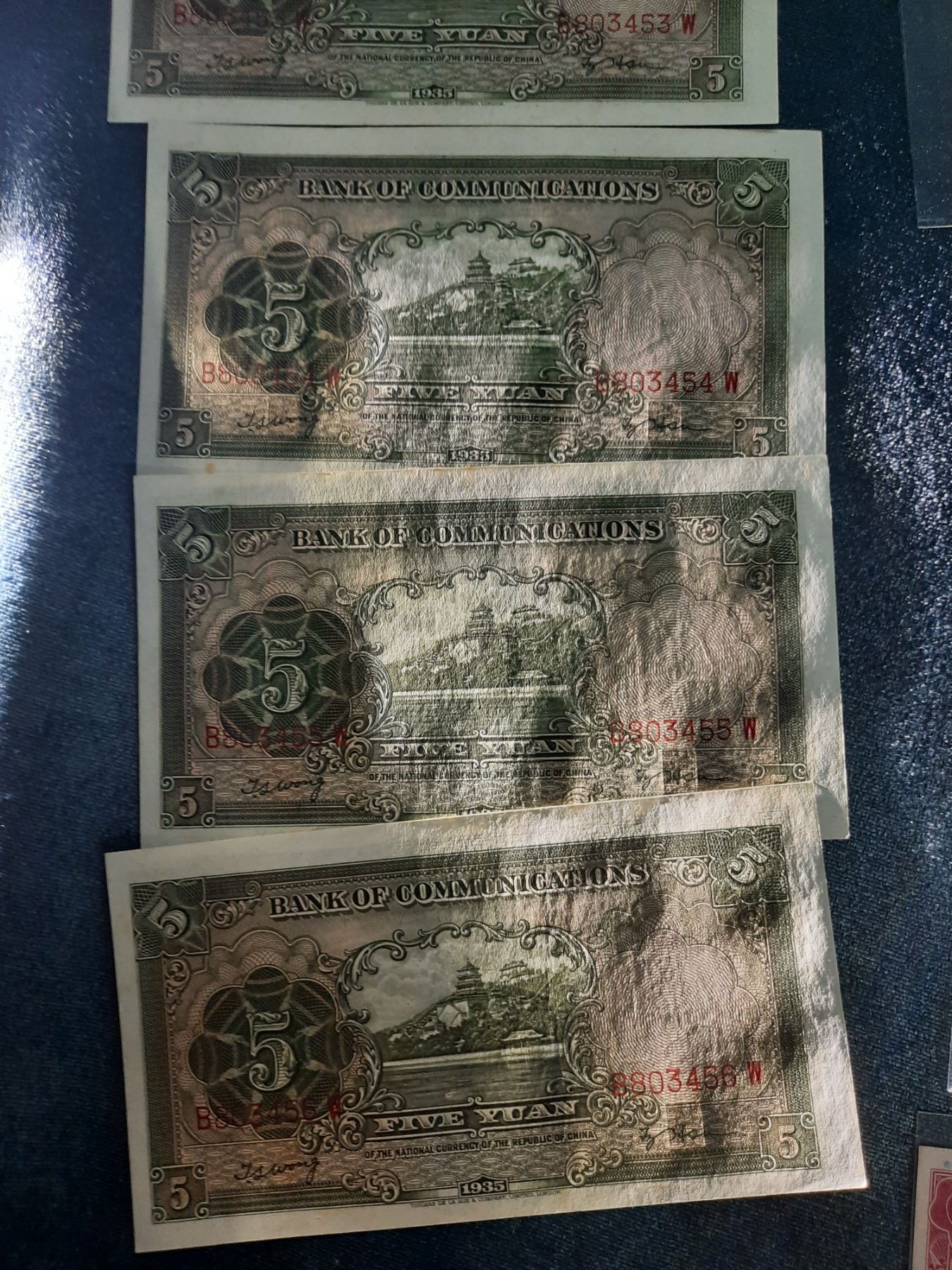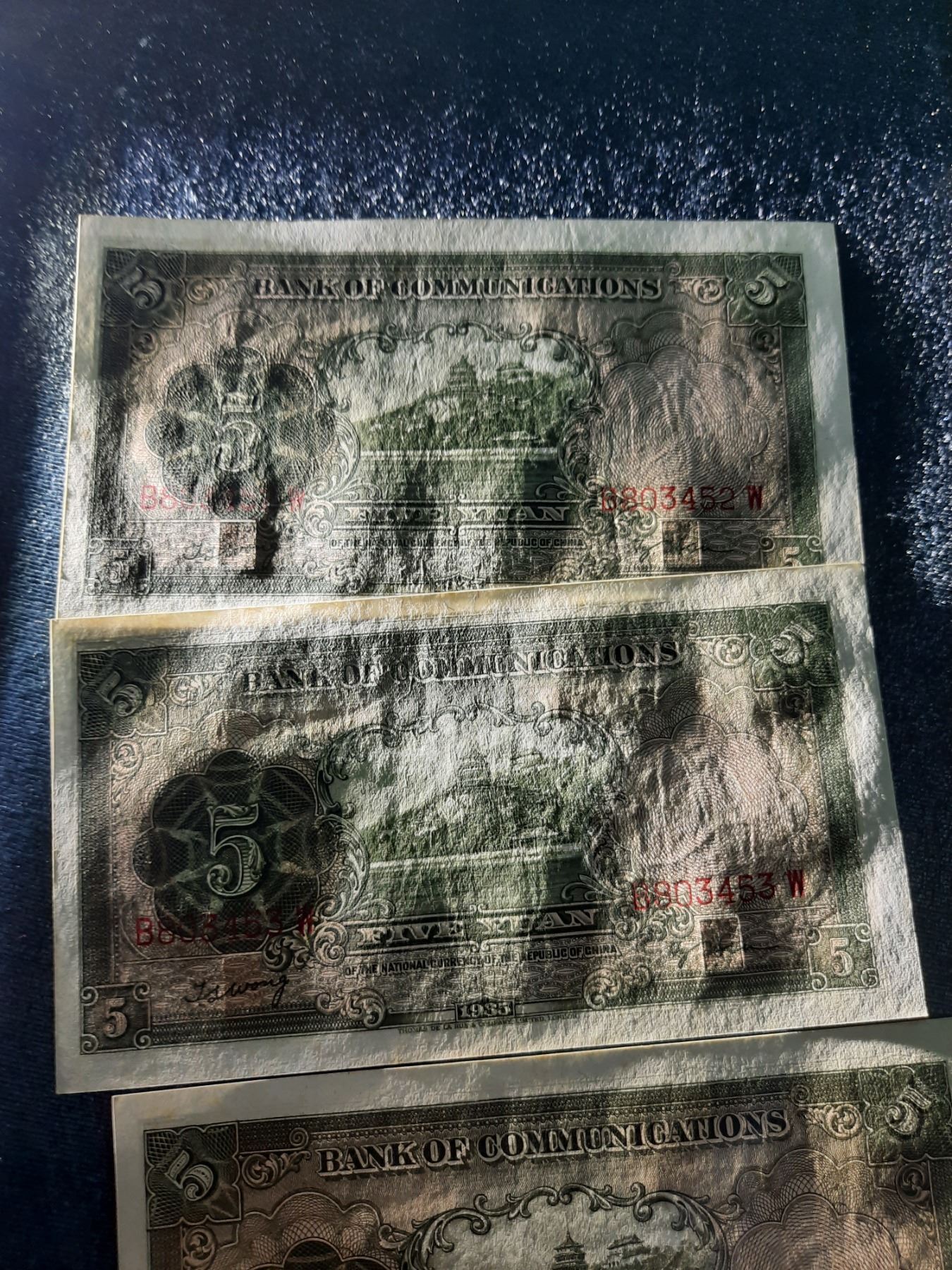 B803452W, 453,454,455,456, 1935 交通銀行5 圓, All are in 直版x5, B803452W, 453,454,455,456, 1935 China Bank of Communications 5 Yuan, All are in UNC Condition x5