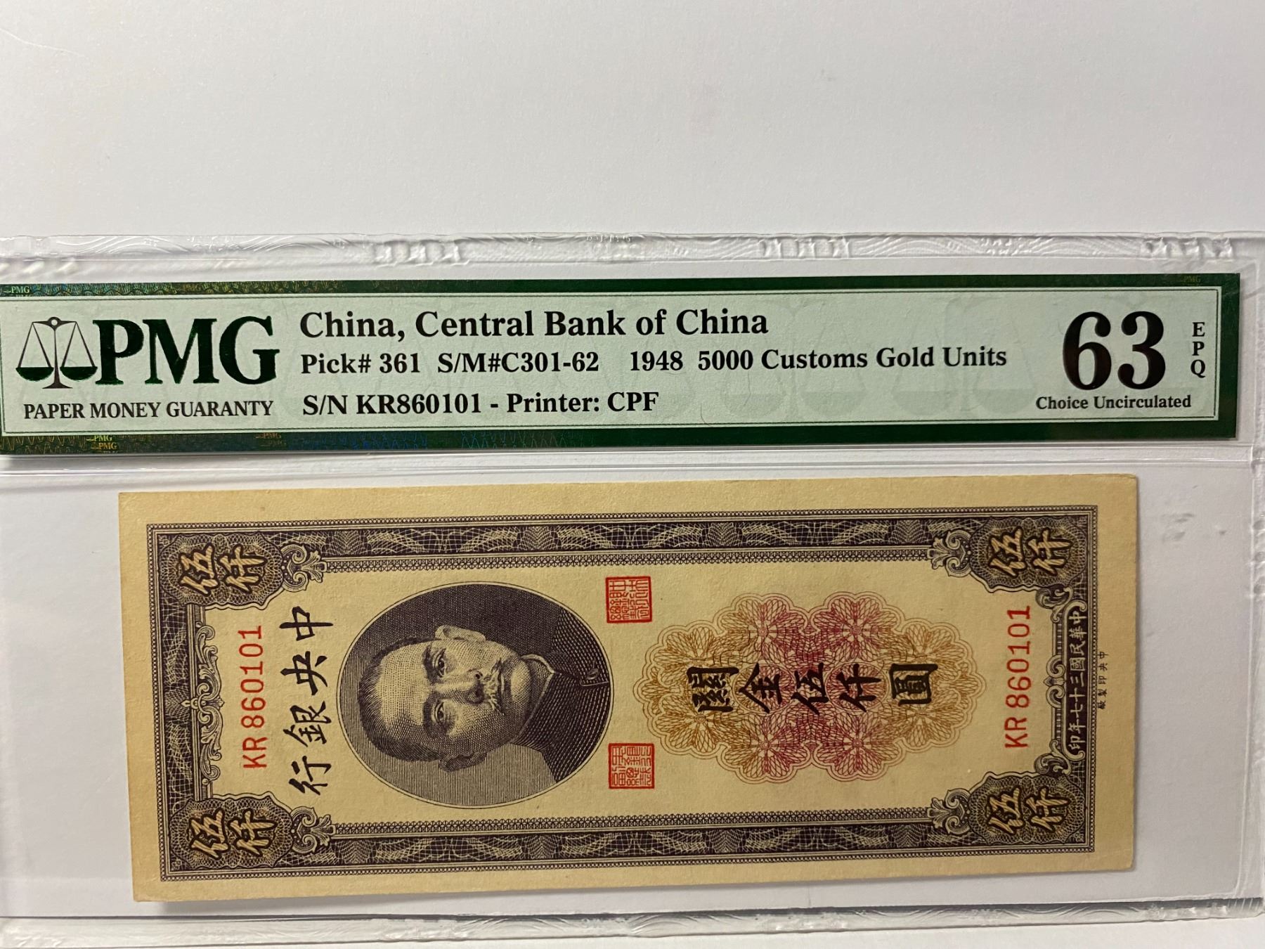 KR860101, 1948 China, Central Bank of China, 5000 Customs Gold Units, PMG 63EPQ