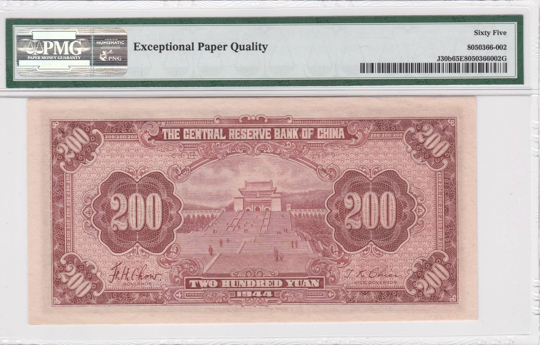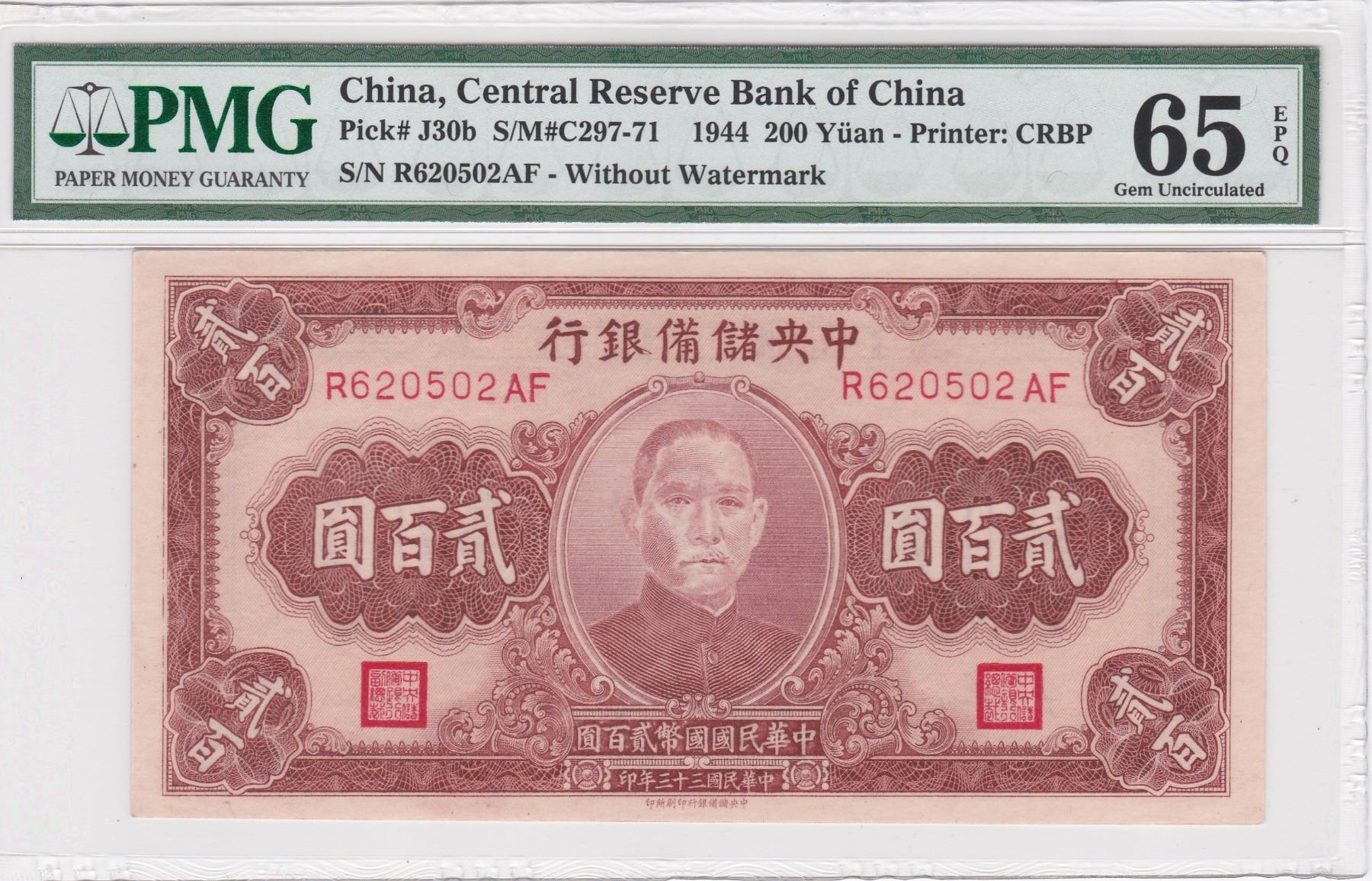 R620502AF, 1944 中國中央銀行, 200 圓, PMG 65EPQ, R620502AF, 1944 China, Central Reserve Bank of China, 200 Yuan, PMG 65EPQ