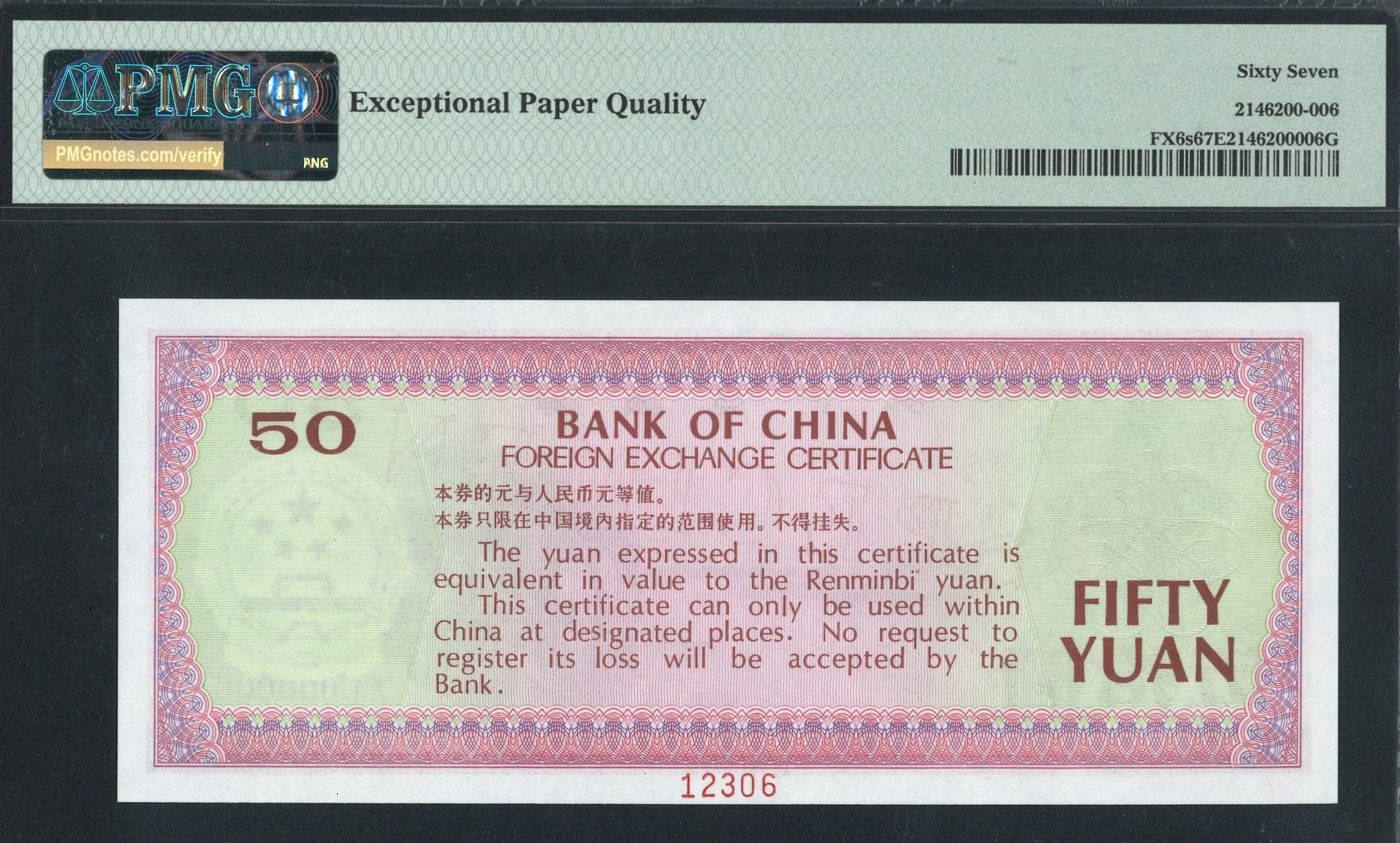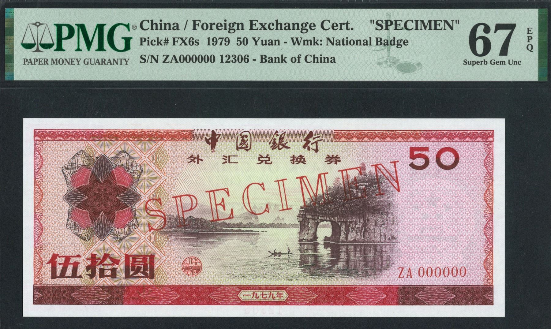 1979, 中國外匯兌換劵, 伍拾圓, 樣票, 編號: ZA000000 12306. PMG 67EPQ.