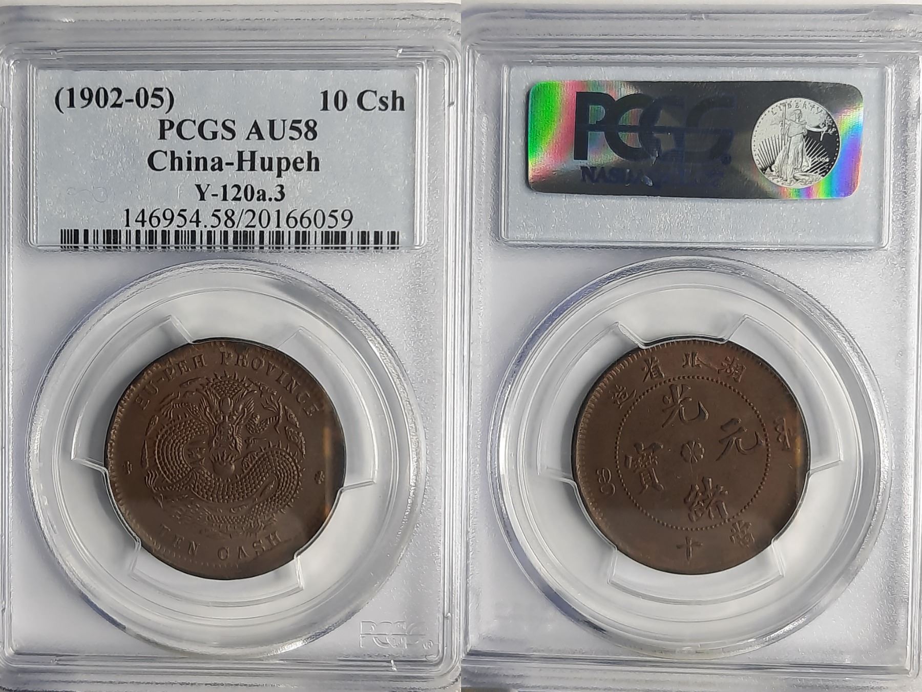 China Hupeh, 10 cash copper coin, 1902-05, Y-120a.3, PCGS AU59