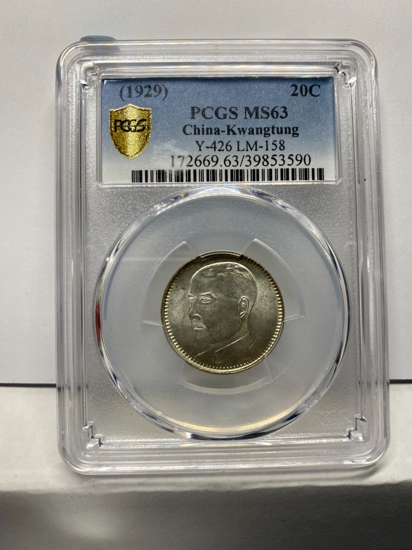 China Kwangtung, 20 cents silver coin, 1929, Y-426 LM-158, PCGS MS64
