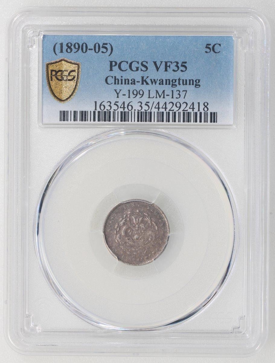 China Kwangtung, 5 cents silver coin, 1890-05, Y-199 LM-137, PCGS VF36