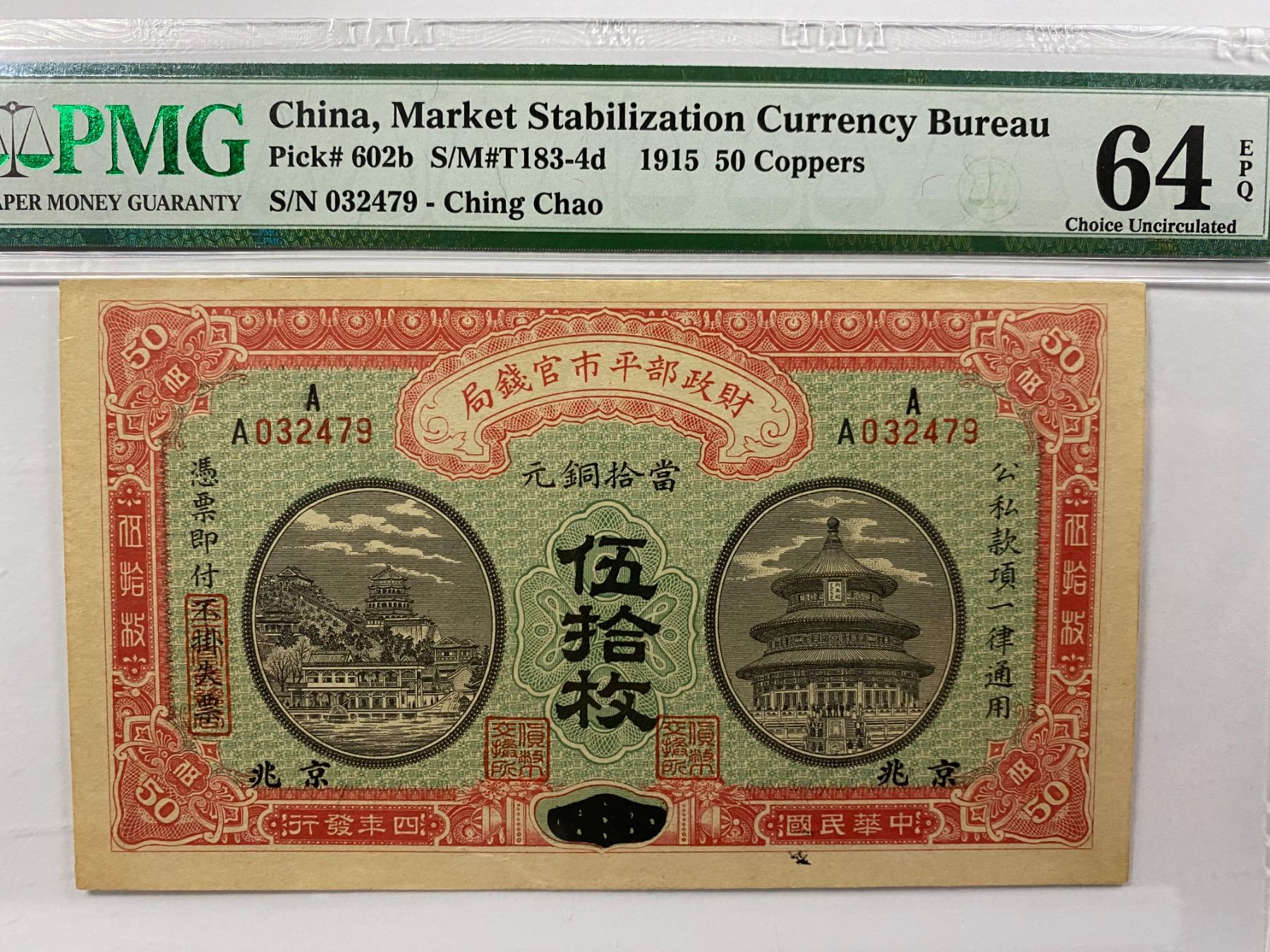 A032479, 1915 China, Market Stabilization Currency Bureau, 50 Coppers, PMG 64EPQ