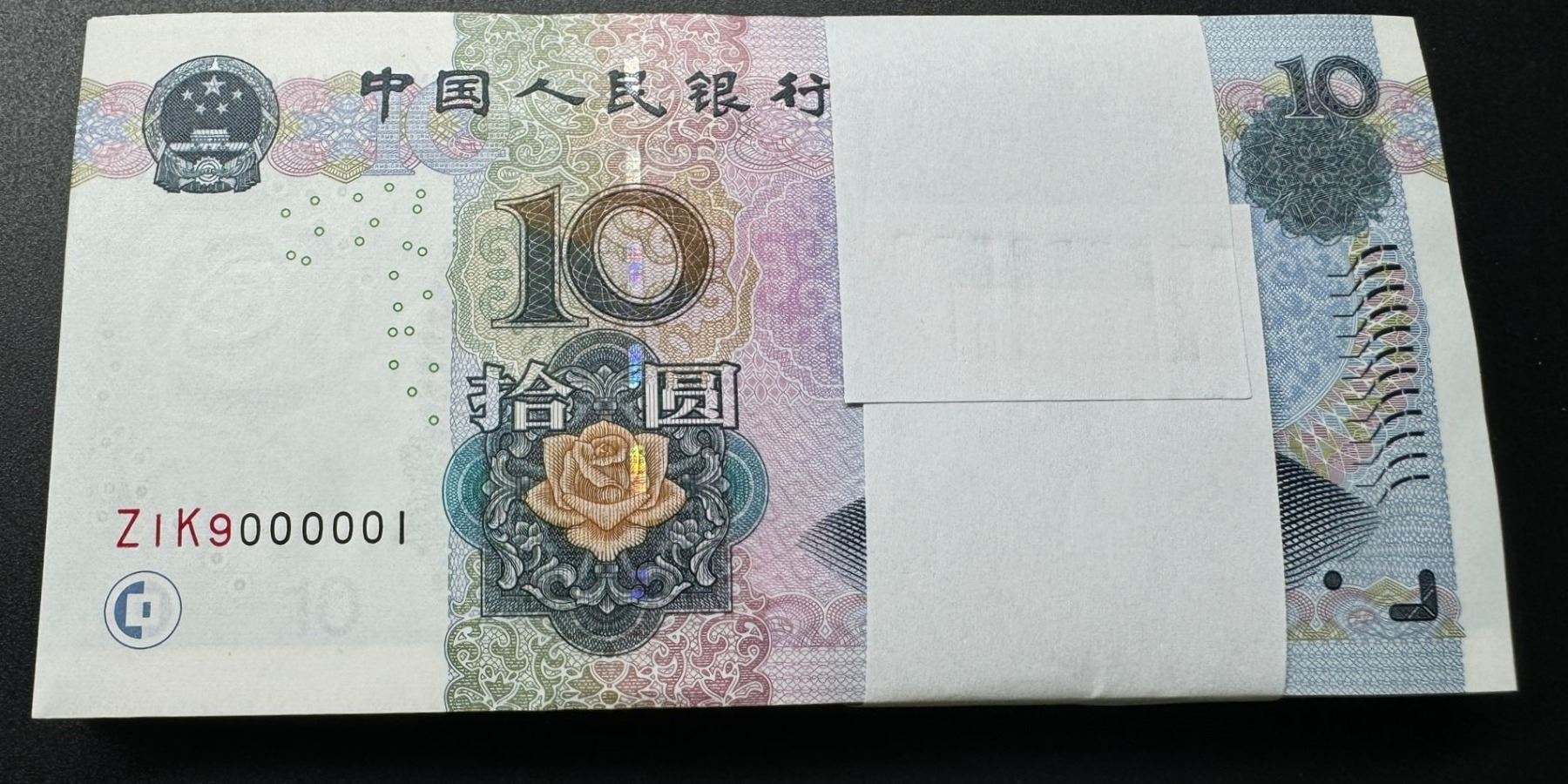 2005, 中國人民銀行, 拾圓, 編號: Z1K9000001- 100. 原刀細號一百連.