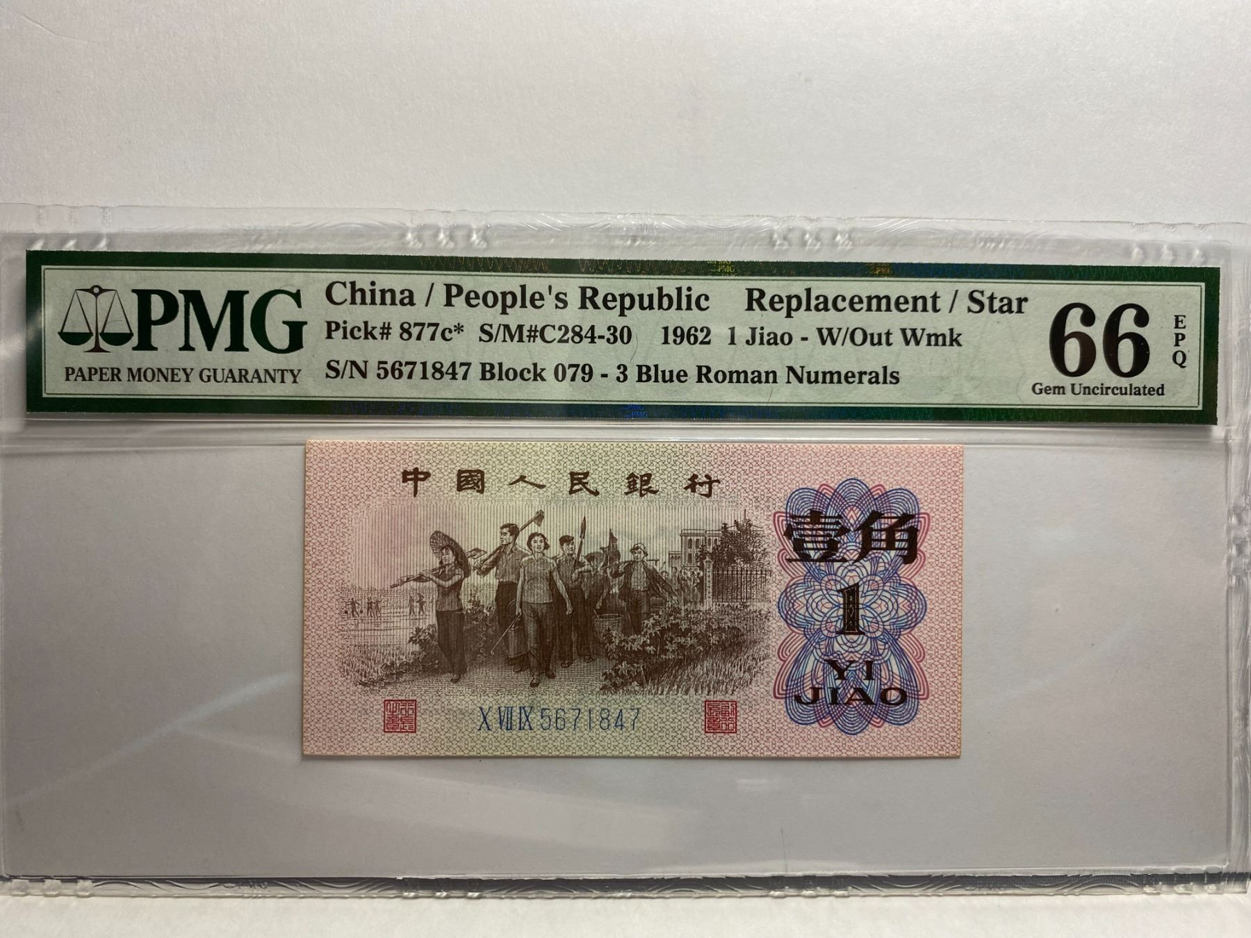#5671847 補版, 1962 中國人民銀行, 1 角, PMG 66EPQ, #5671847 Replacement, 1962 China Peoples Republic, 1 Jiao, PMG 66EPQ