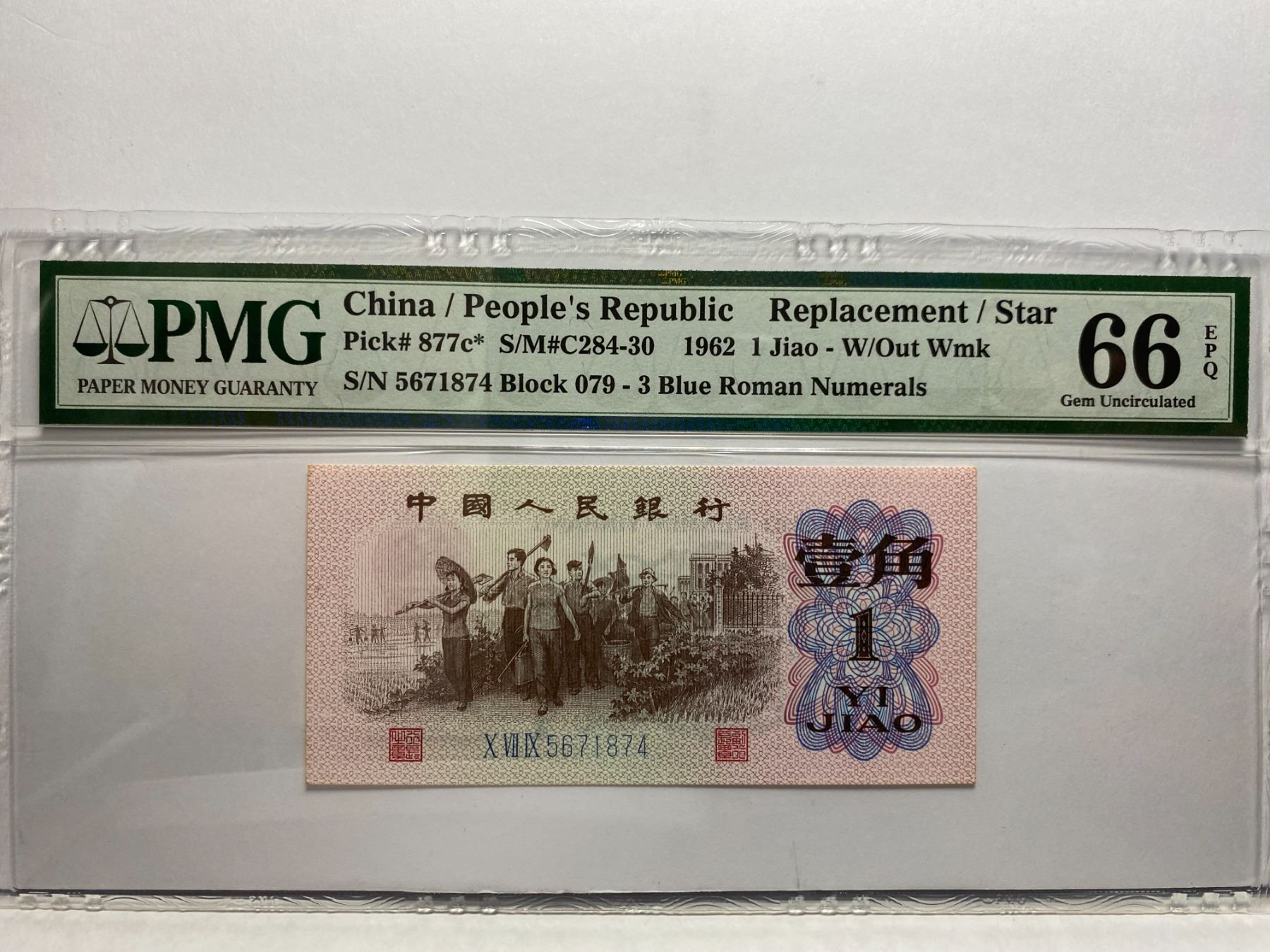 #5671874 補版, 1962 中國人民銀行, 1 角, PMG 66EPQ, #5671874 Replacement, 1962 China Peoples Republic, 1 Jiao, PMG 66EPQ