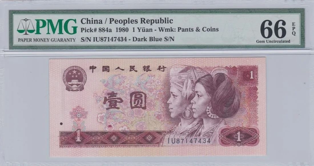 IU87147434, 1980 中國人民銀行, 1 圓, PMG 66EPQ, IU87147434, 1980 China Peoples Republic, 1 Yuan, PMG 66EPQ