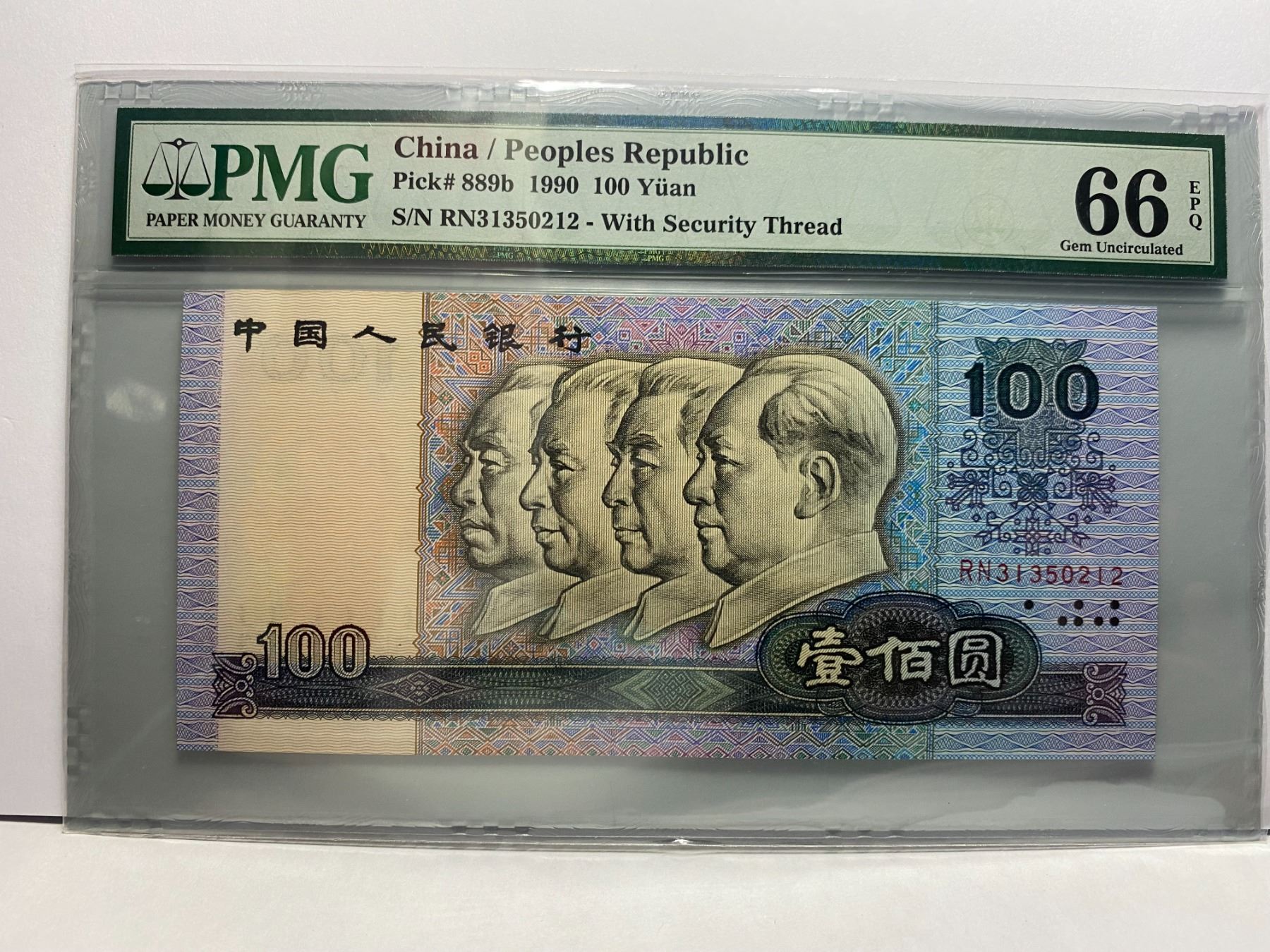 RN31350212, 1990 中國人民銀行, 100 圓, PMG 66EPQ, RN31350212, 1990 China Peoples Republic, 100 Yuan, PMG 66EPQ