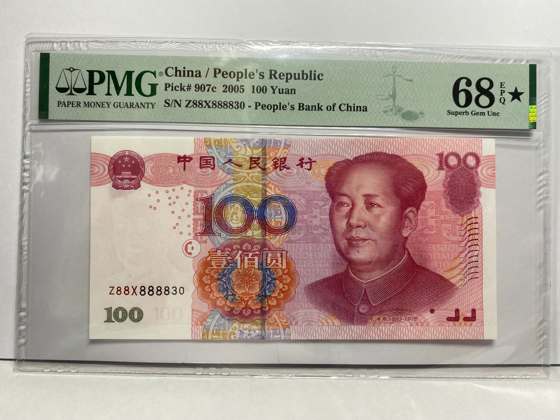 Z88X888830, 2005 中國人民銀行, 100 圓, PMG 68EPQ* 星標, Z88X888830, 2005 China Peoples Republic, 100 Yuan, PMG 68EPQ* STAR