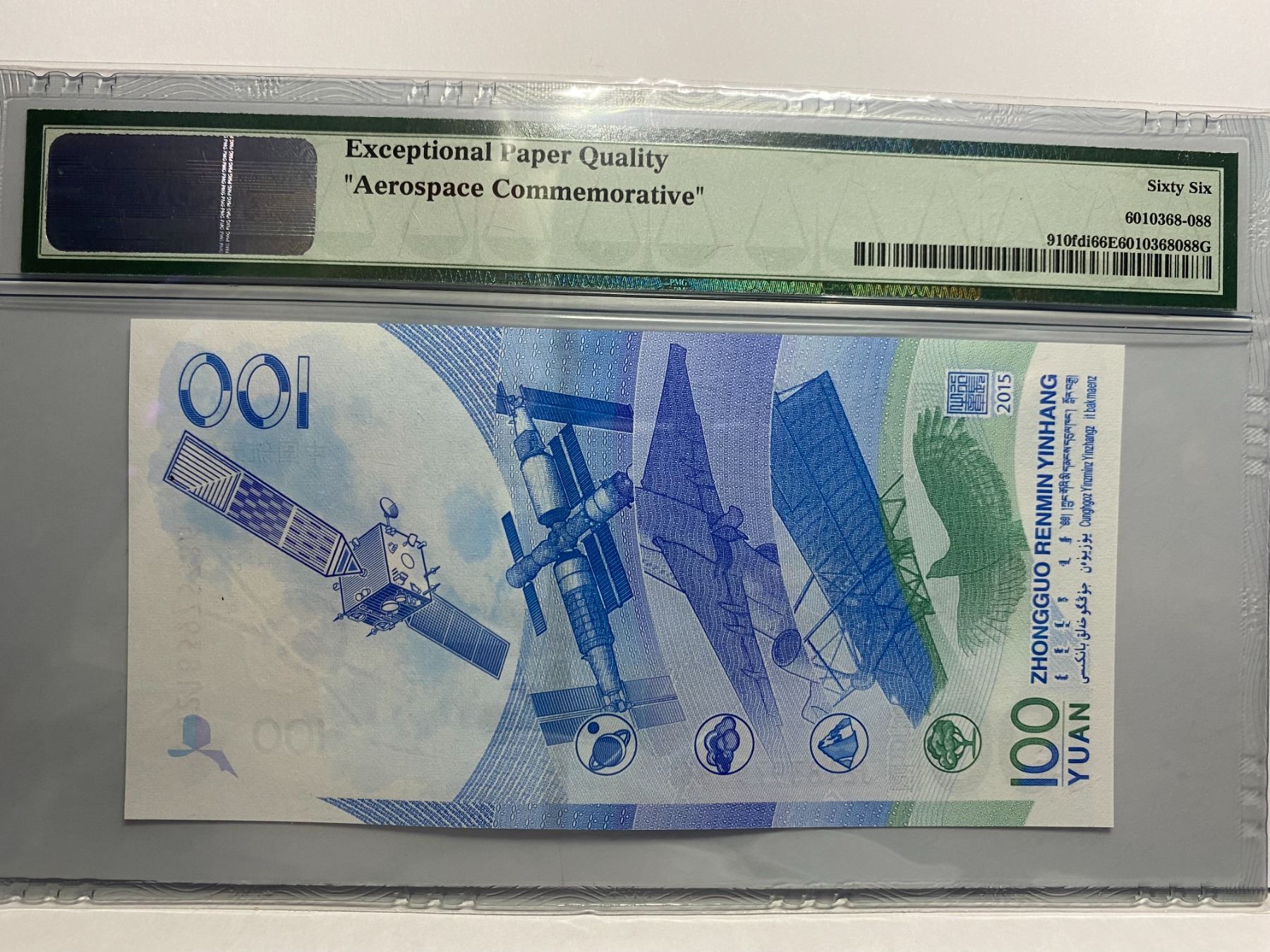 J2183975386, 航天 鈔,首發 PMG 66EPQ, 2015 中國人民銀行, 100 圓, J2183975386, Aerospace Commemorative, First Day of Issue PMG 66EPQ, 2015 China People's Republic, 100 Yuan