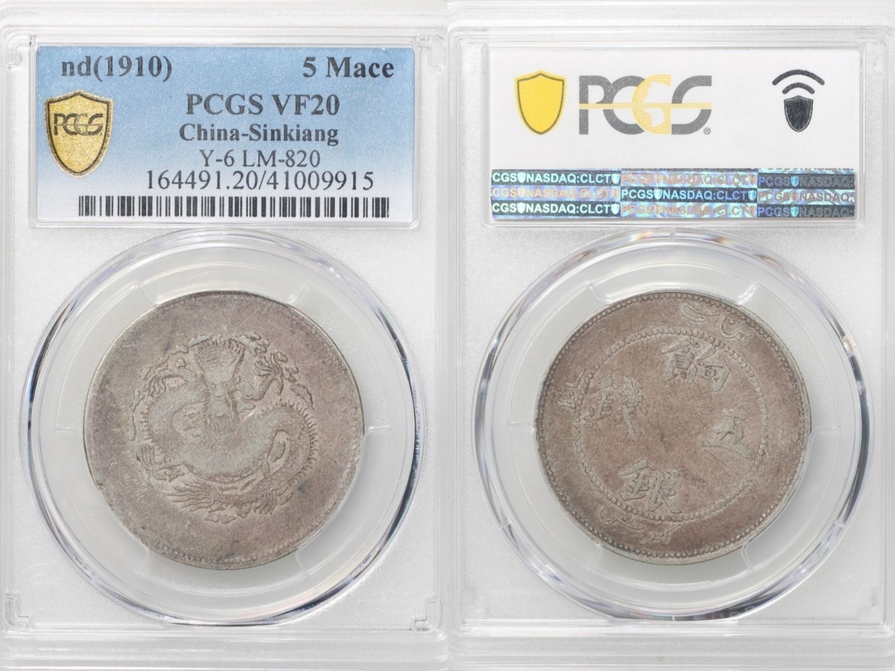 China Sinkiang, 5 Mace silver coin, ND 1910, Y-6 LM-820, PCGS VF21