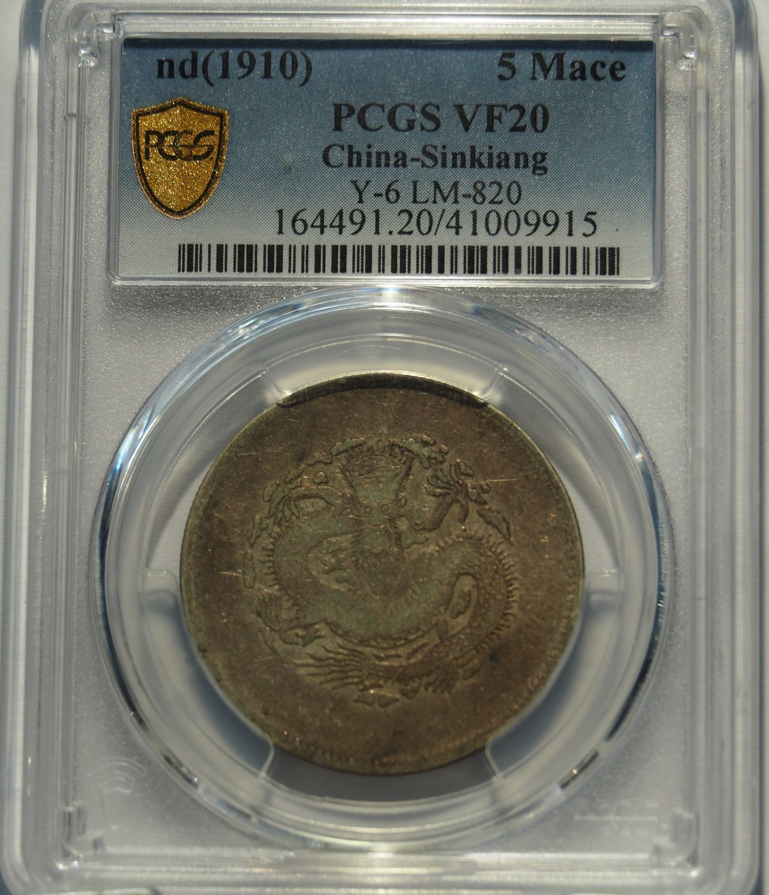China, Sinkiang, 5 Mace silver coin, ND 1910, Y-6 LM-820, PCGS VF20