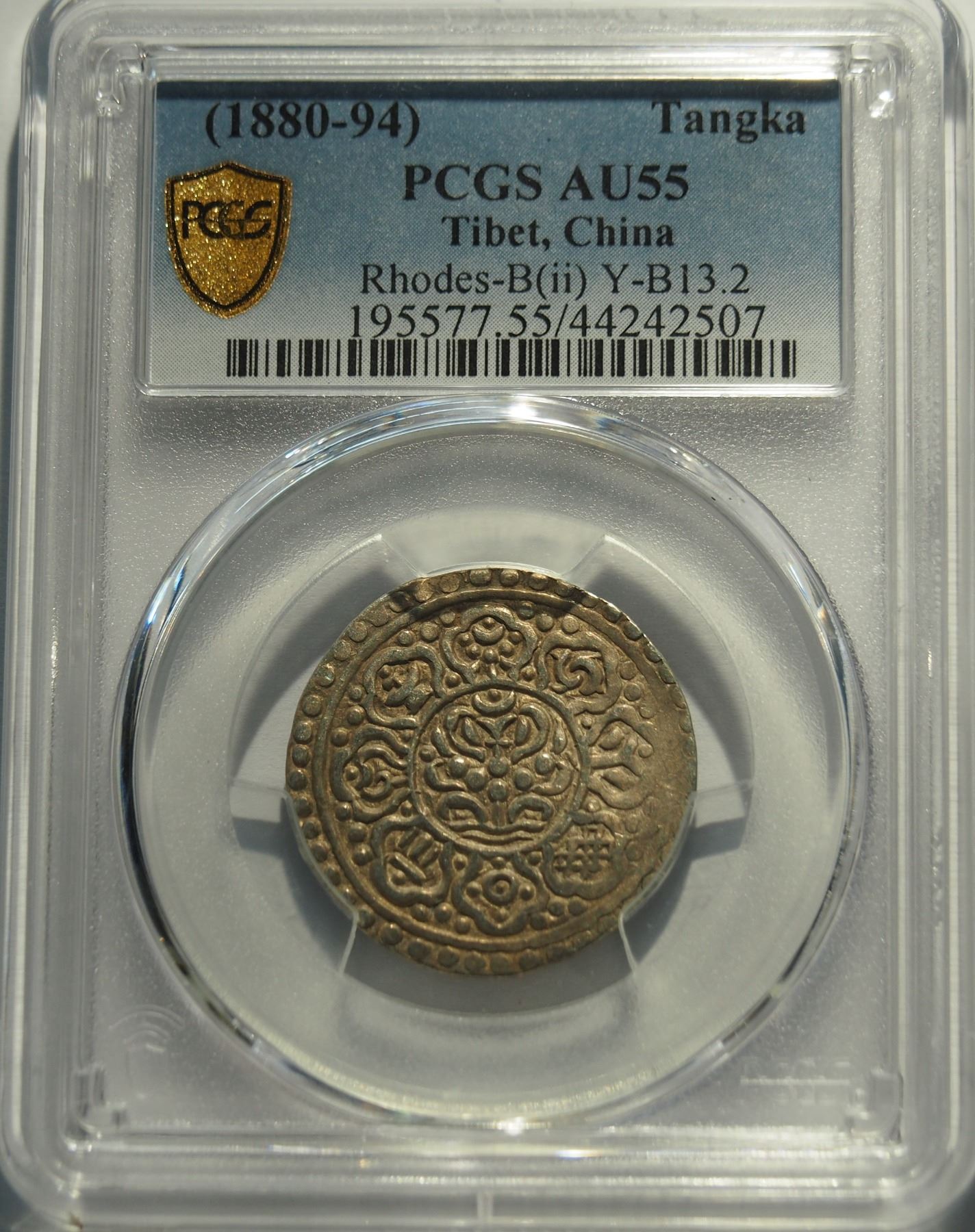 China, Tibet, Tangka silver coin, 1880-94, Rhodes-B(ii) Y-B13.2, PCGS AU55