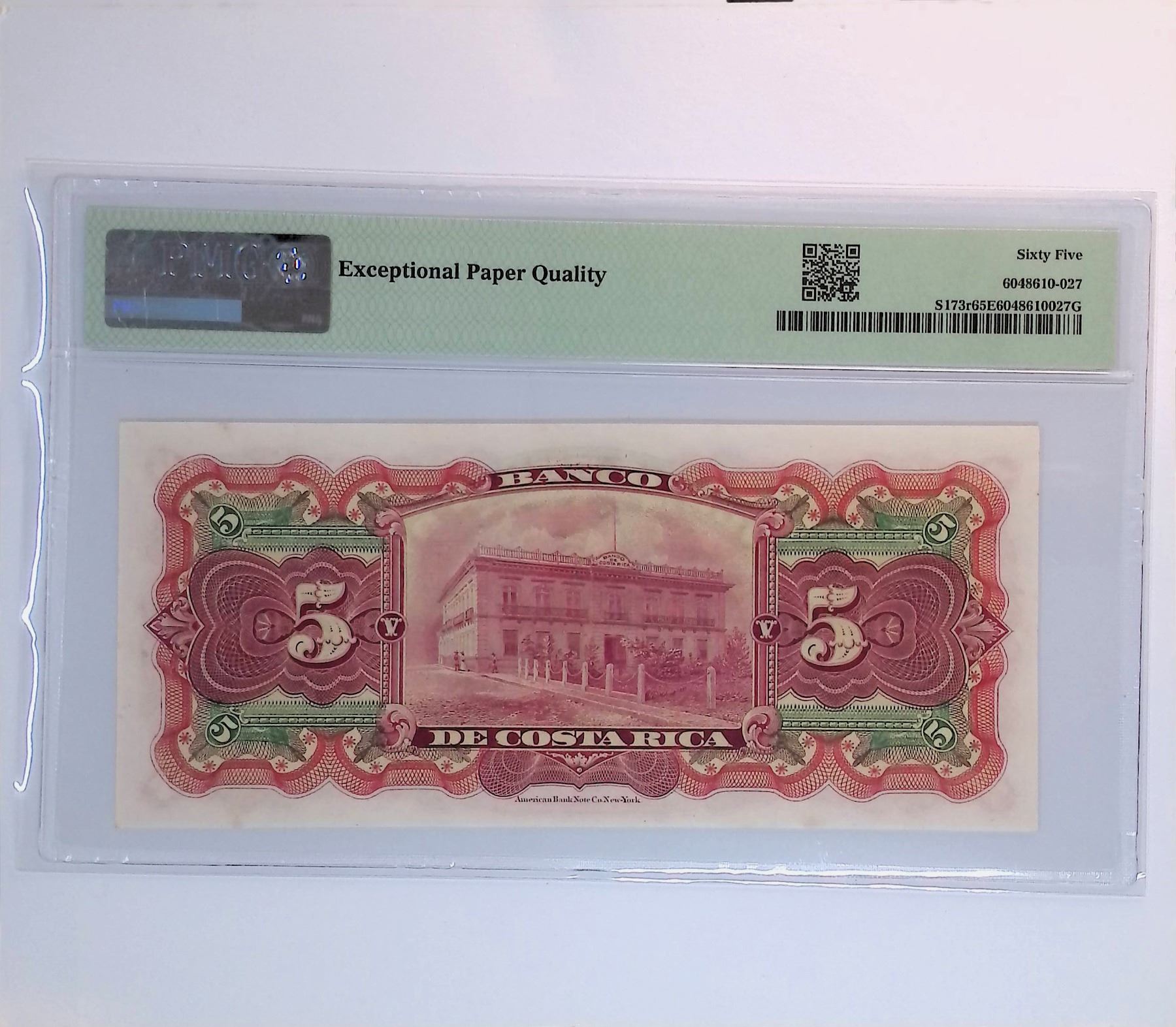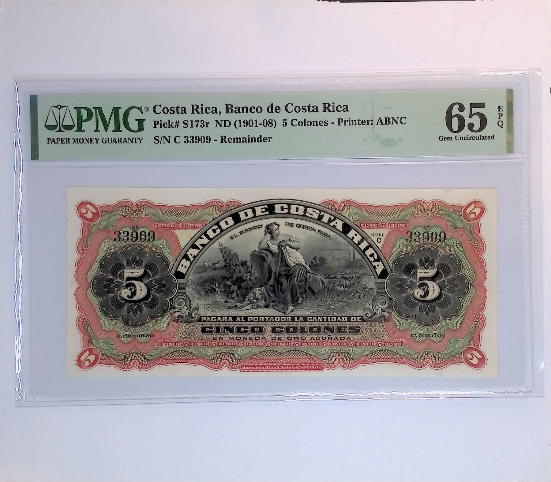 Costa Rica, ND (1901 -08), 5 Colones, C33909 PMG 65EPQ Remainder.