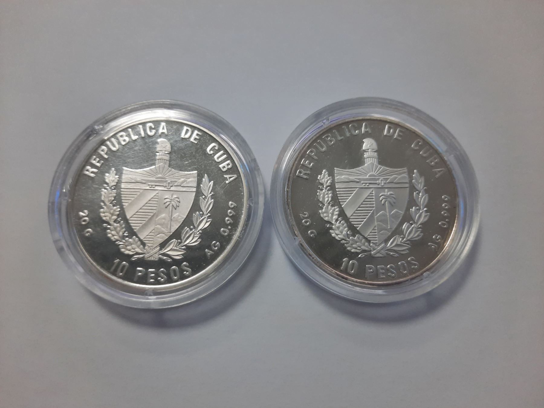 Cuba 10 Pesos, 1992 and 1996, silver coin, Set of 2