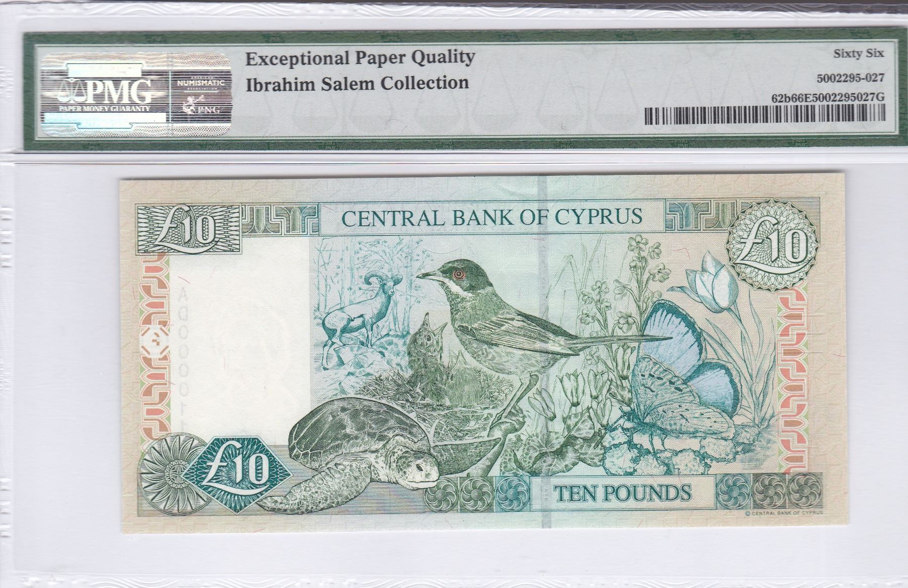 Cyprus, 1998, 10 pounds AD 000011 PMG 66EPQ. Ibrahim Salm Collection