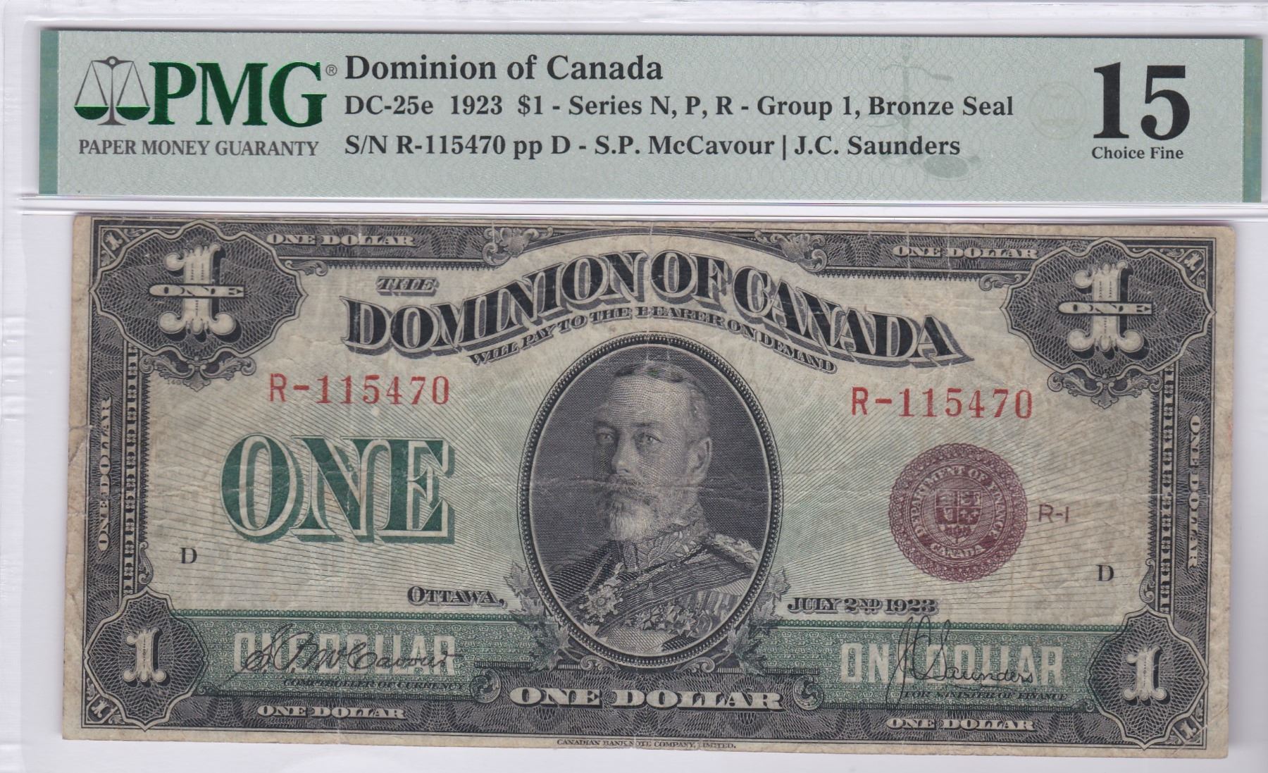 Dominion of Canada, 1923, $1, R-115470. PMG 15