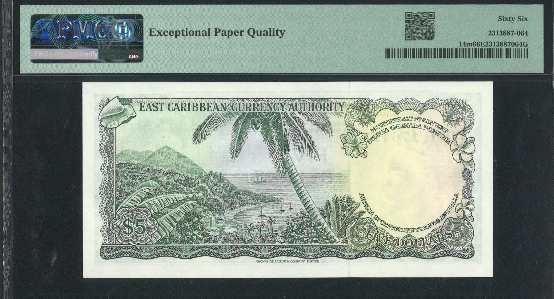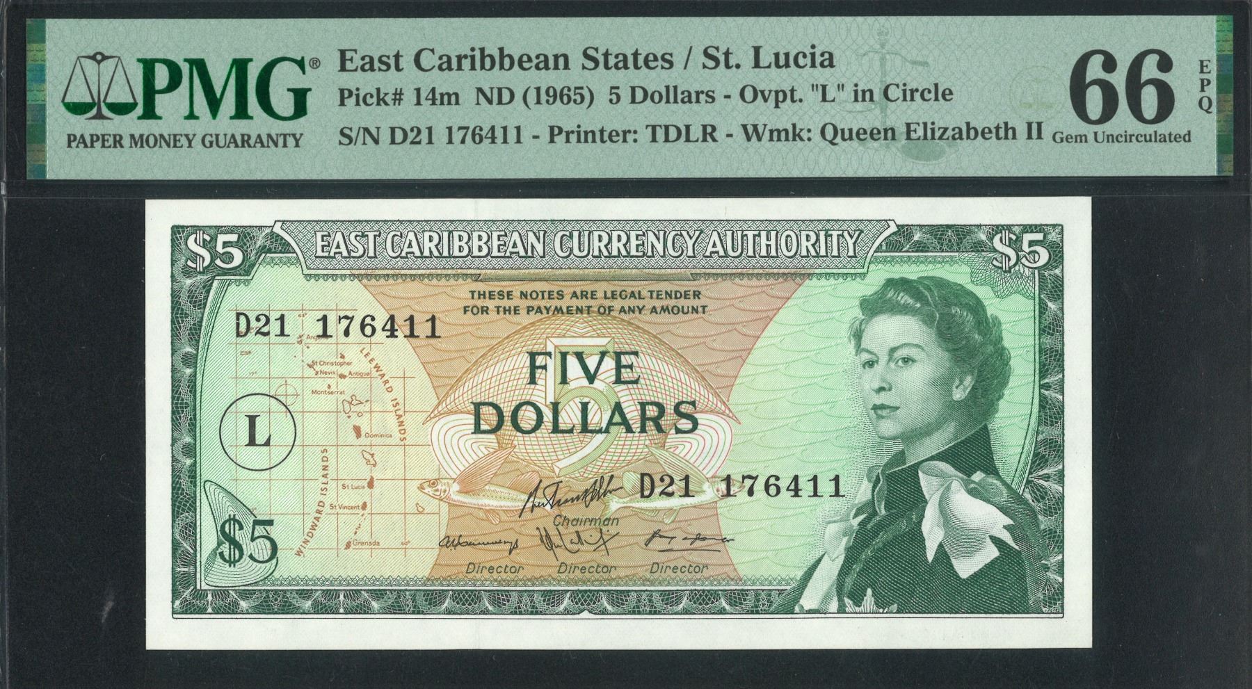 East Caribbean States/ St. Luica, ND (1965), $5, D21 176411. PMG 66EPQ.