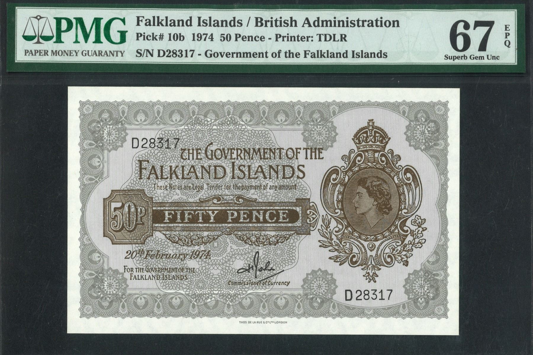 1974, 褔克蘭群島, 50 便士, 編號: D28317. PMG 67EPQ.