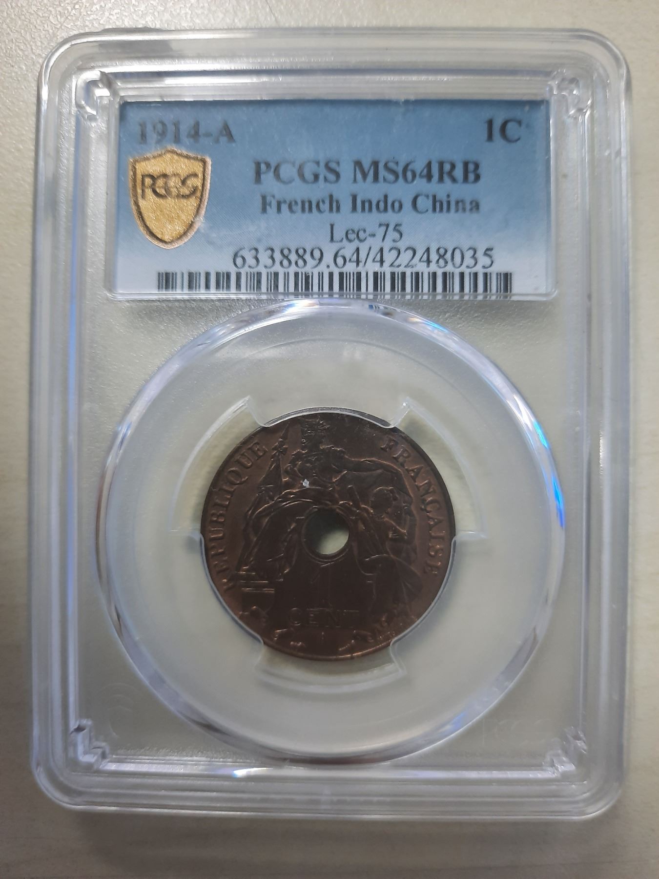 法屬印中, 1 cent 銅幣, 1914-A, PCGS MS64RB, French Indo China, 1 cent bronze coin, 1914-A, PCGS MS64RB