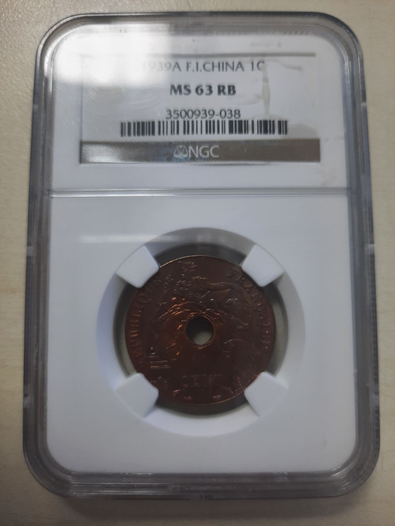 法屬印中, 1 cent 銅幣, 1939-A, NGC MS63RB, French Indo China, 1 cent bronze coin, 1939-A, NGC MS63RB