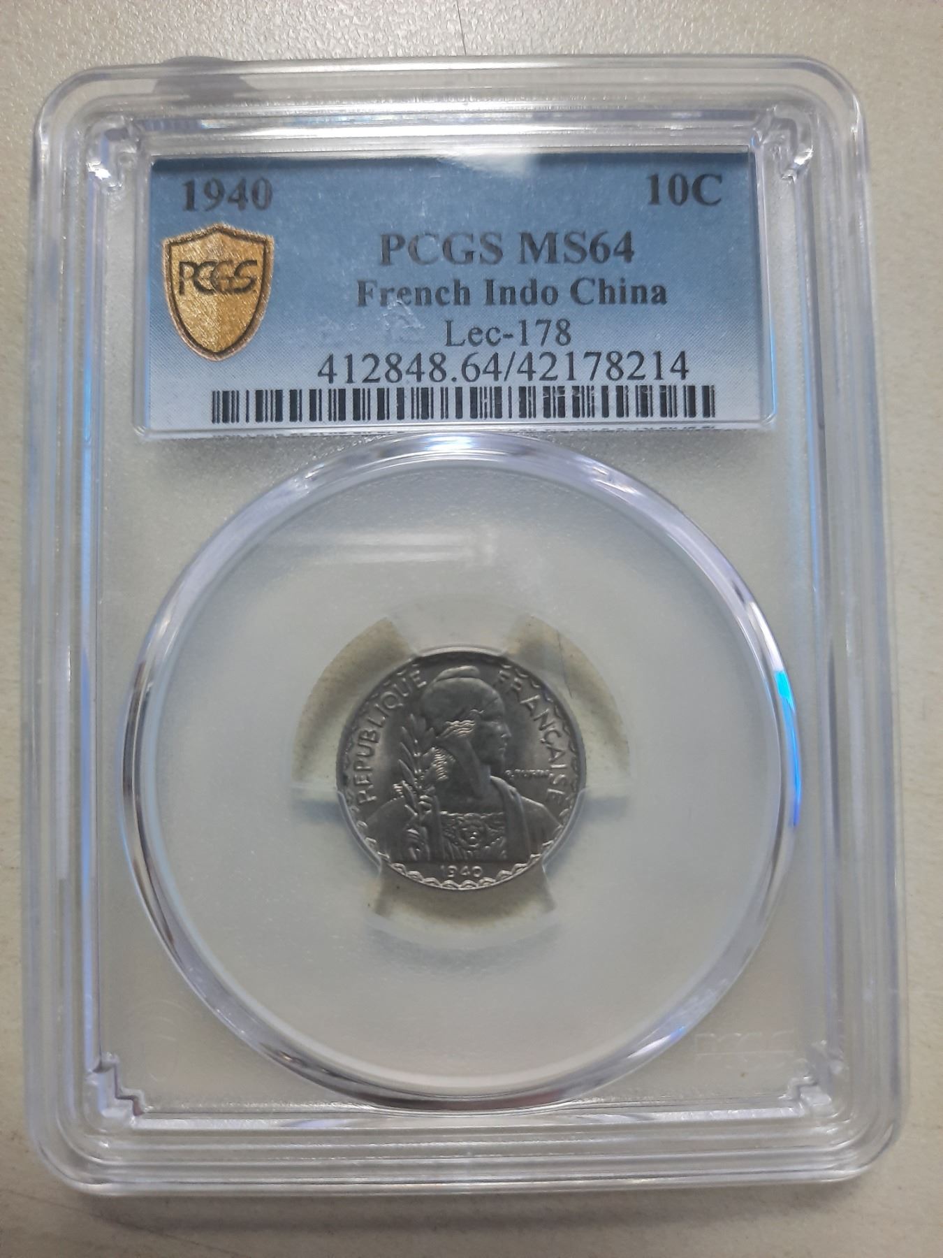 法屬印中, 10 仙 硬幣, 1940, PCGS MS64, French Indo China, 10 cents coin, 1940, PCGS MS64