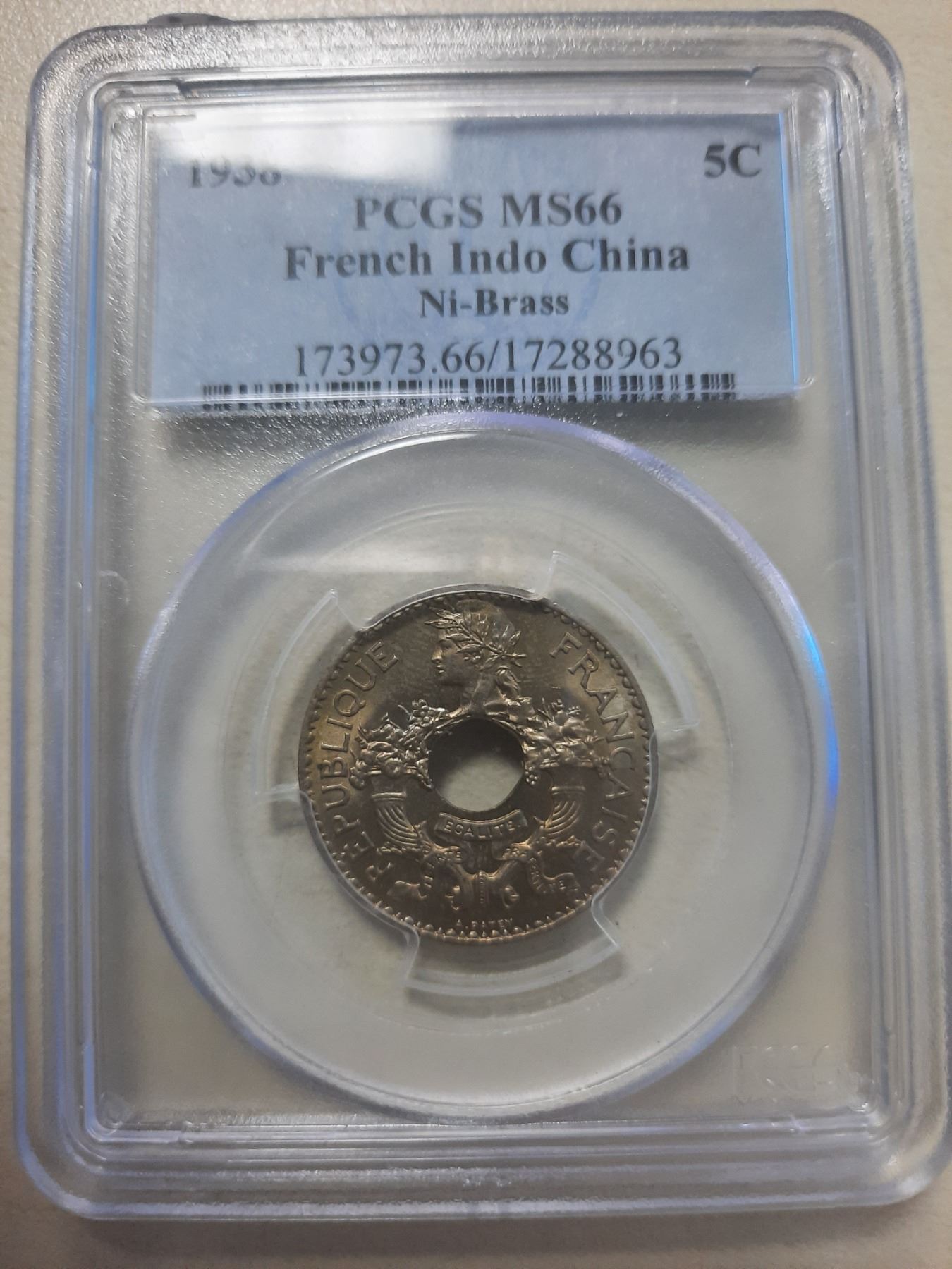 法屬印中, 5 仙 硬幣, 1938, PCGS MS66, French Indo China, 5 cents coin, 1938, PCGS MS66