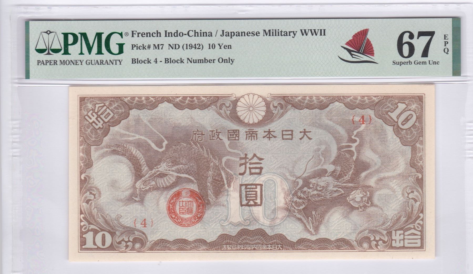 French Indo - China/ Japanese Military, ND (1942), 10Yen, Block 4. PMG 67EPQ
