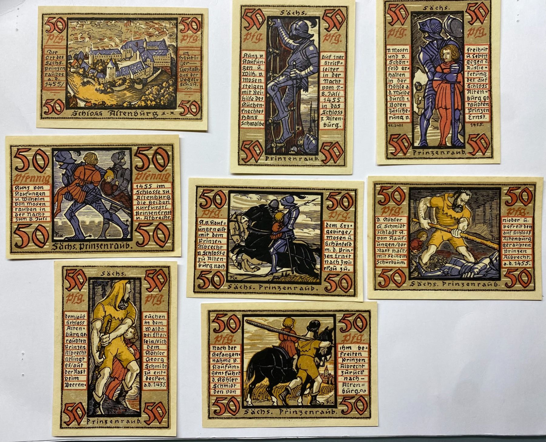 1921, 德國- 阿爾滕堡, 一套8張50 芬尼緊急票 (共8張)