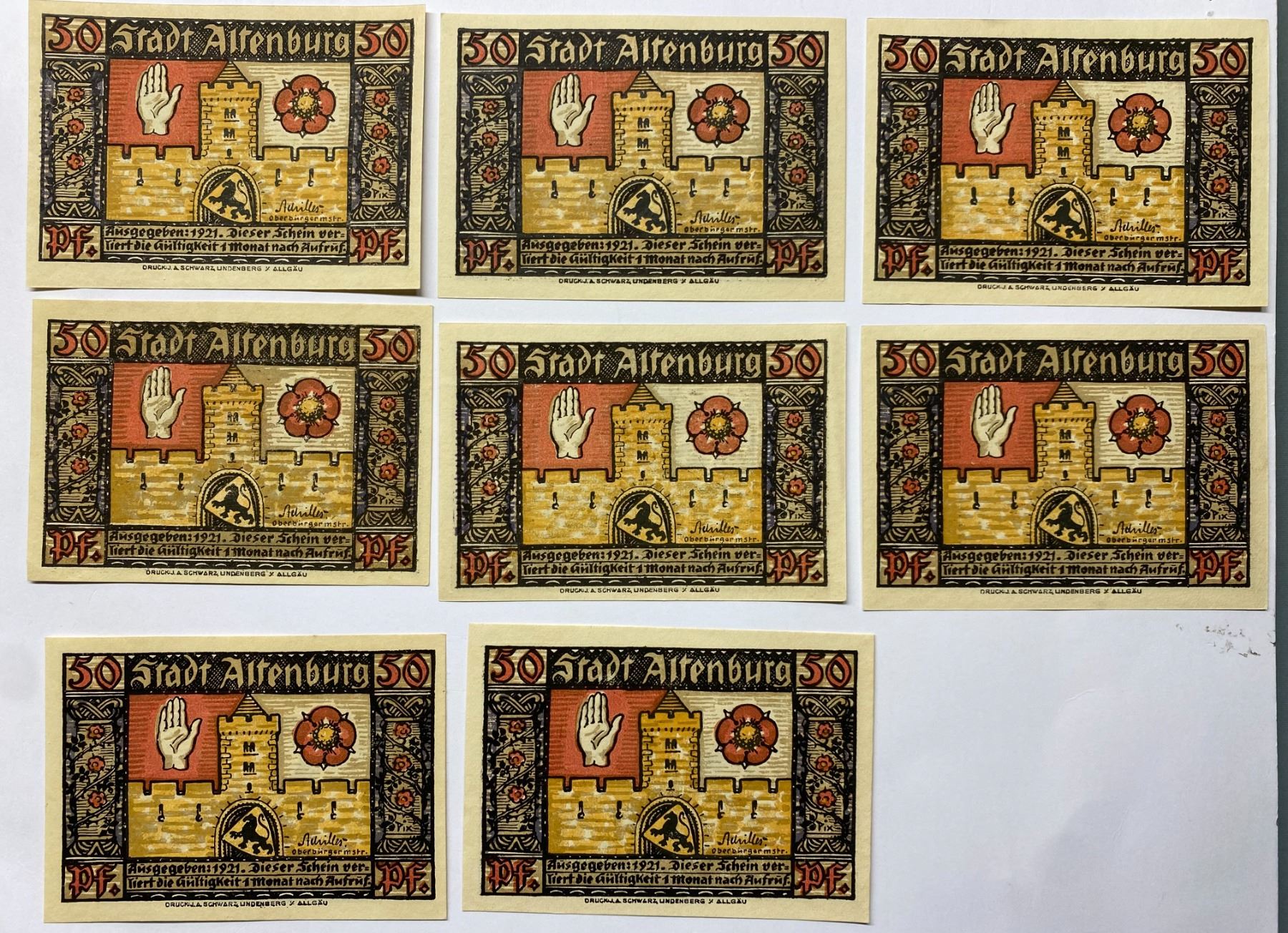 German - Altenburg, notgeld, 1921,a set of 8 pcs, 50 pfennig (Total: 8pcs).