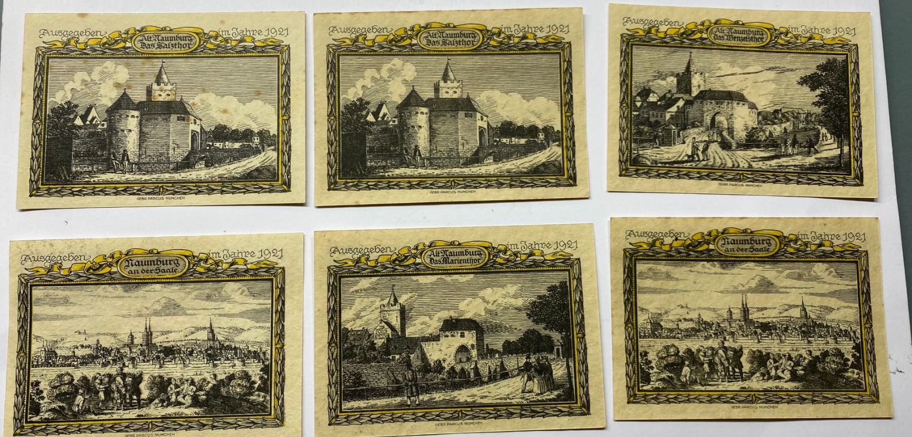 1921, 德國- 瑙姆堡, 一套6 張50 芬尼緊急票 (共6張)